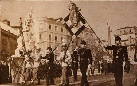 – no dia 8 apenas teve lugar o desfile do Batalhão Colegial na Avenida da Liberdade, ficando por realizar a Missa em S. Domingos e o jantar dos AA no Colégio. Assinale-se desde já que a ausência dos familiares e a escassa presença de
