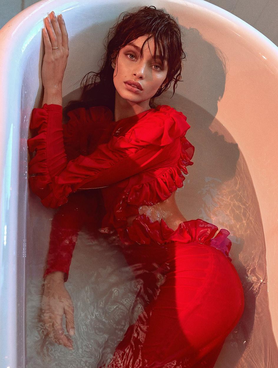 Model Luma Grothe seduces in sensual, scarlet fashion drama styled by Arnold Milfort. Photographer Greg Swales creates the sultry artistryforElleSerbiaFebruary 2018./ Hair by Brittan White; makeup by victor Noble