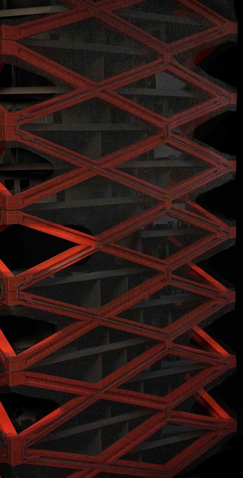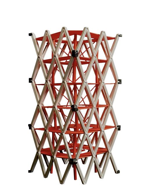 The design stems from iterative structural study models that were made early on. The structure is supported by a massive exterior frame that every other component clips into.