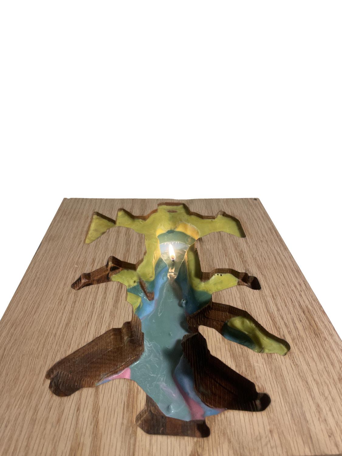 The model illustrates the different stages of the downcutting process that happened over millions of years, while also actively “eroding” more layers of wax while lit.