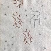 SandArt, hvor jeg arbejder med sand, broderi, blyant på papir.