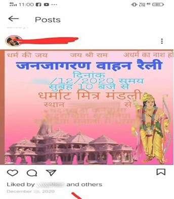 Image of a poster shared on social media announcing that a rally will be conducted to raise funds for Ram temple in Ayodhya.