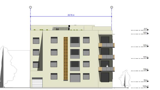 El edificio se divide en cuatro niveles con un nivel subterráneo para estacionamiento y servicios del edificio y una terraza en la parte de la azotea. El edificio esta equipado con todos los servicios y como extra tiene una zona de amenidades y un salon de eventos para los usuarios Hay 3 tipologías de departamentos que se replican en cada nivel del edificio Cada departamento cuenta con 3 recamaras, dos baños completos, area de lavado, sala, cocina y comedor.