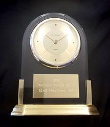AADC awards given to honorees, from left: Corwin Award gold pin, Alumnae Recognition Award pin, Young Alumna Mabel Award engraved frame, Vanguard Award clock, AADC Medal, Society of Excellence medallion.