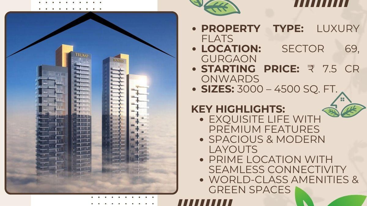 Trump Residences in Gurugram’s Sector 69 are the embodiment of modern opulence, offering vast 3 and 4 BHK apartments ranging from 3,000 to 4,500 sq. ft. Each unit is meticulously crafted by Matteo Nunziati to deliver the finest blend of elegance and functionality.