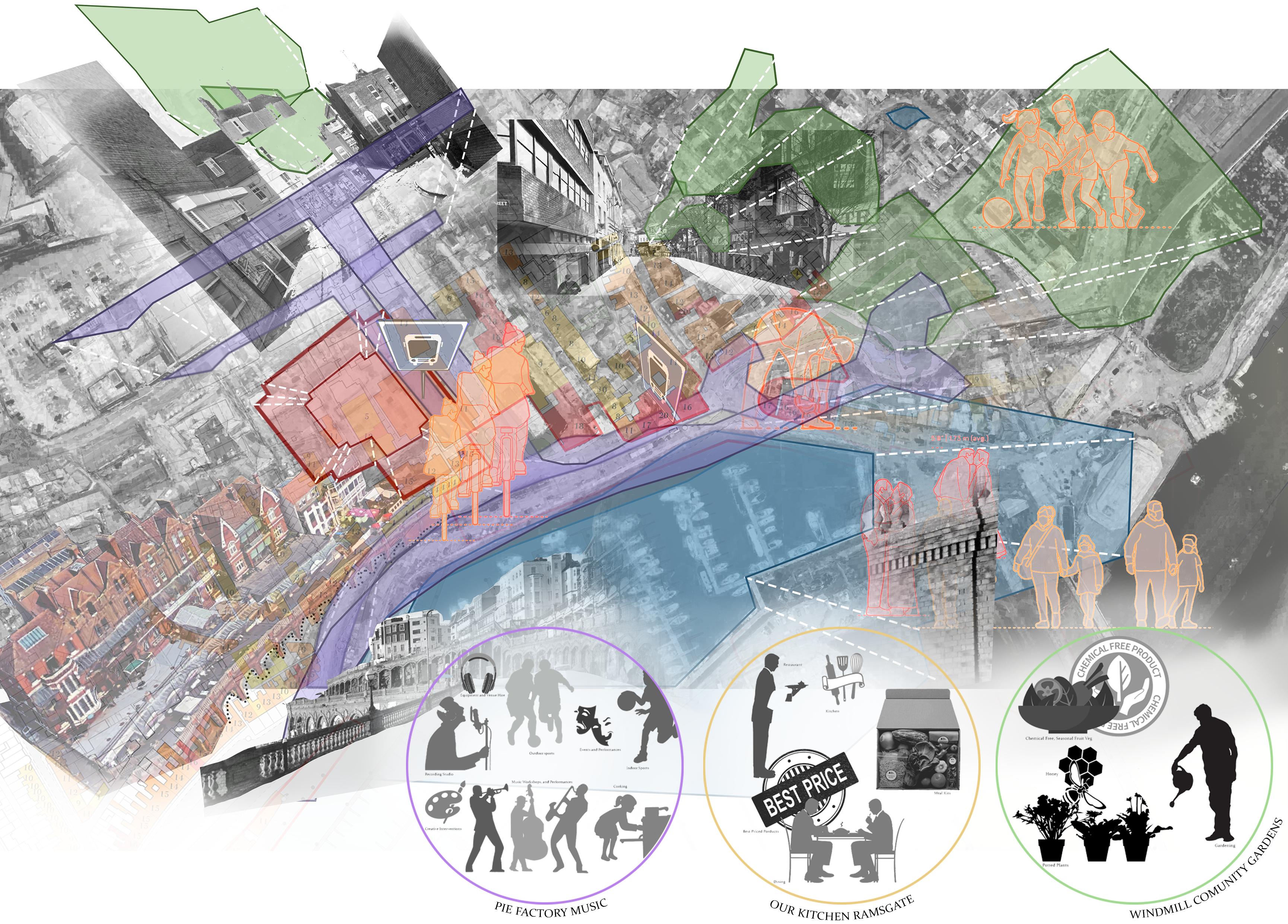 I designed a new civic amenity by repurposing the existing Royal Harbour Carpark found in Ramsgate. This project embraced the idea of ‘trade and exchange’ to support community growth. I independently developed briefs through consultation with three diverse clients whose purpose was to expand/relocate to this new site. I created groups of clients and analysed possible collaborations through spaces. To further understand this, I undertook a task of mapping the nearby streets to understand the towns social and physical conext. This allowed my design to support the town’s social, economic, and cultural life.