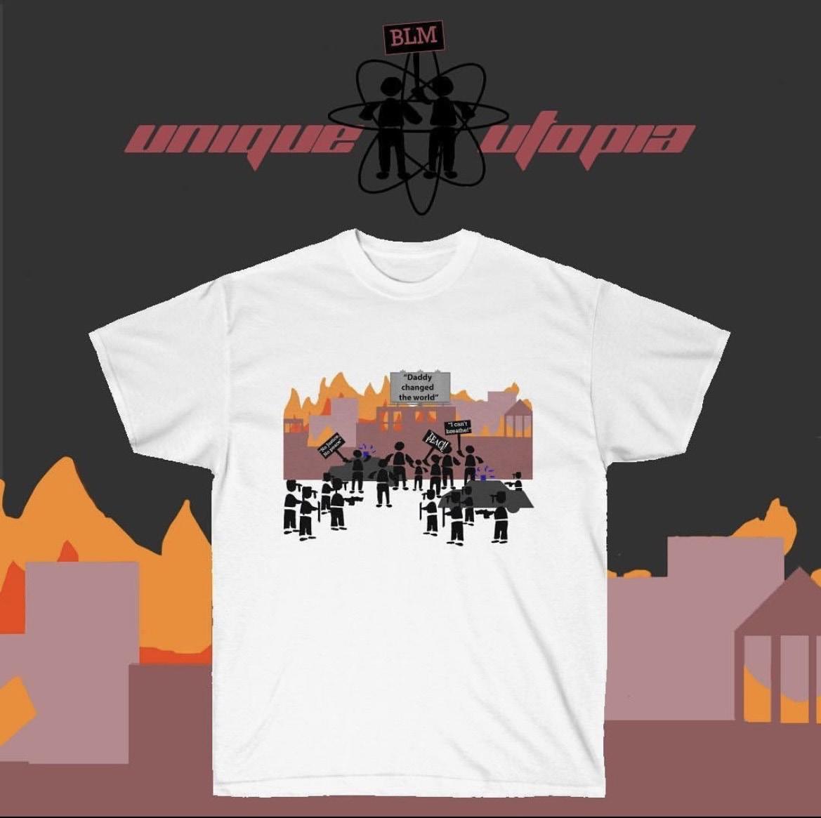 Unique Utopia made a powerful debut with their BLM (Black Lives Matter) T-shirts during the global COVID-19 lockdown when the movement gained momentum. The T-shirts served as a statement of solidarity, raising awareness and supporting the fight against racial injustice. All profits from the initial drop were donated to BLM-related charities. The design featured a narrative of a protest scene and impactful quotes, including “Daddy Changed the World”, famously spoken by George Floyd’s daughter, and the widely recognized slogan “TEACH PEACE,” promoting unity. This launch showcased Unique Utopia’s commitment to social impact through fashion, empowering individuals to advocate for change.