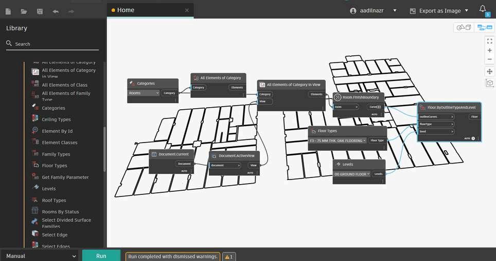 A Dynamo script was used to extract room boundaries and automatically generate floors and ceilings based on those boundary lines. This significantly sped up the process of creating interior finishes for each room with consistency and accuracy.