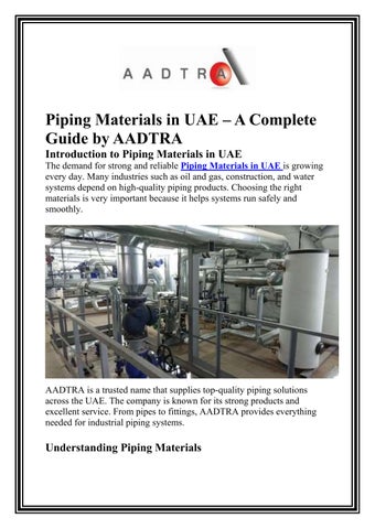 AADTRA is your dependable partner for industrial piping solutions, offering premium piping materials and related products from trusted manufacturers. With ISO 9001:2015 certification and decades of experience, we support customers across the Middle East with quality supplies and timely delivery — trusted by major industry players.