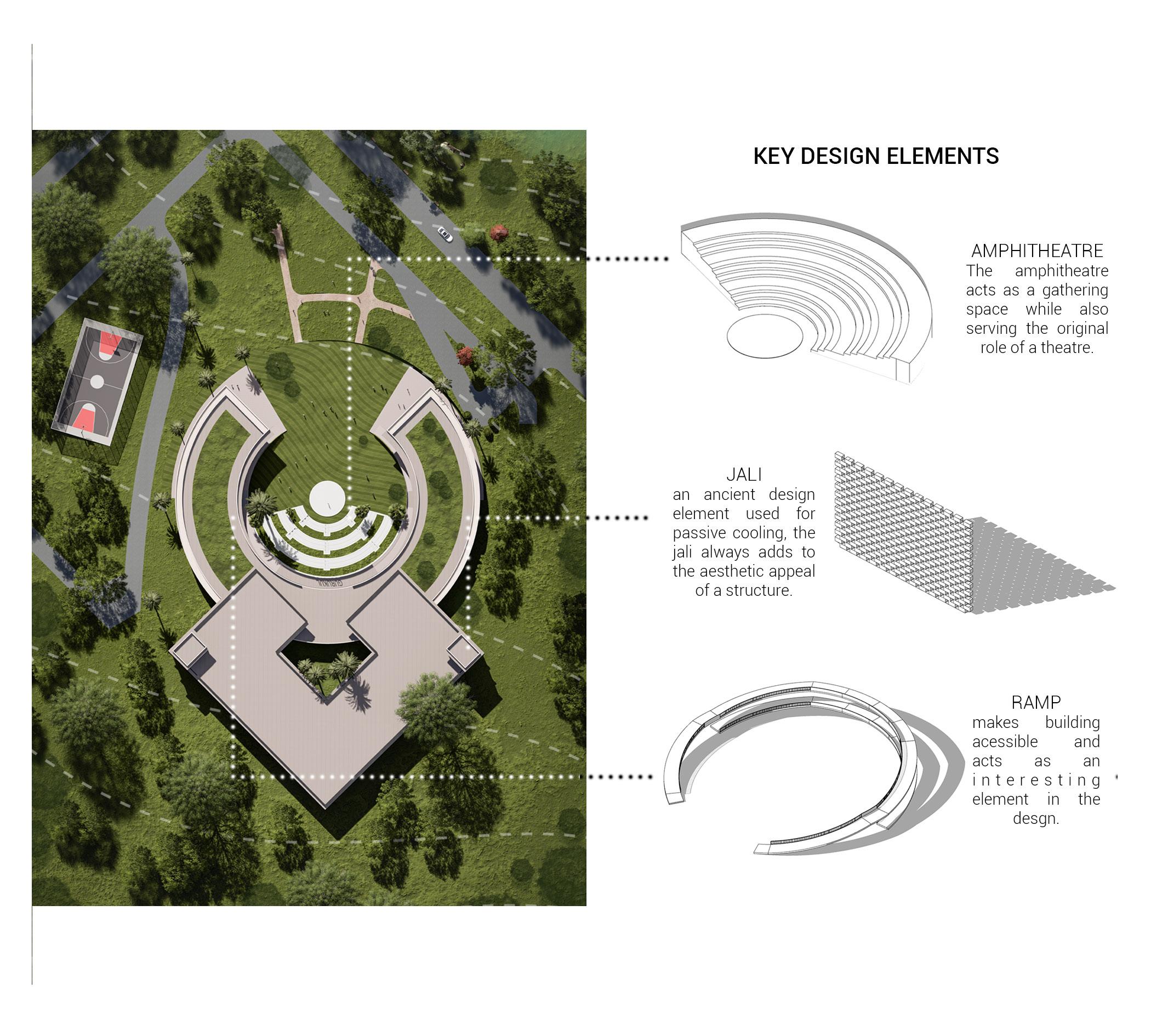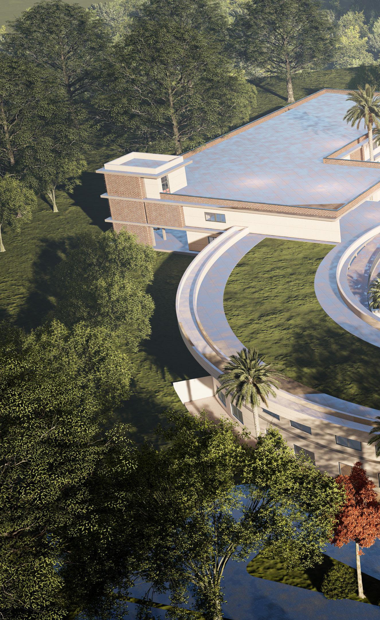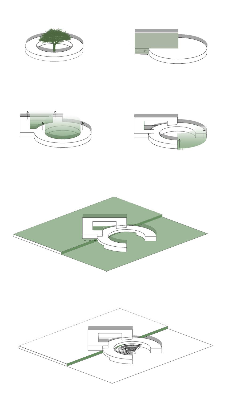 a quarter from the frontal section of the circular block is also sub tracted to provide a clear access to the building and open up the building to the north light.
