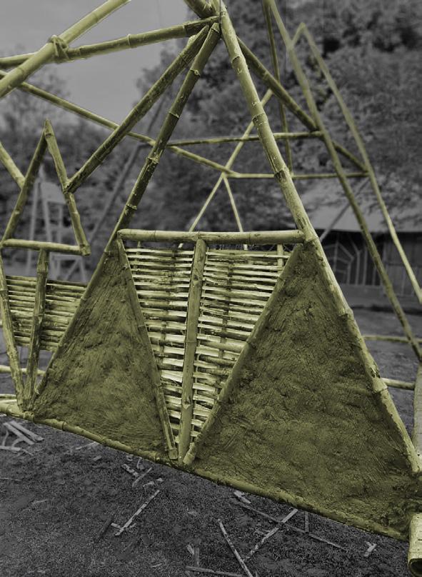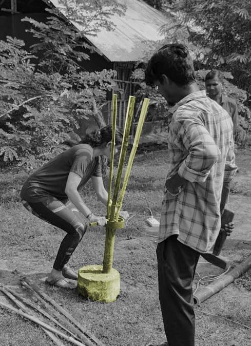 Making of a bamboo structure : A cottage was designed by the participants using bamboo as reinforcement.