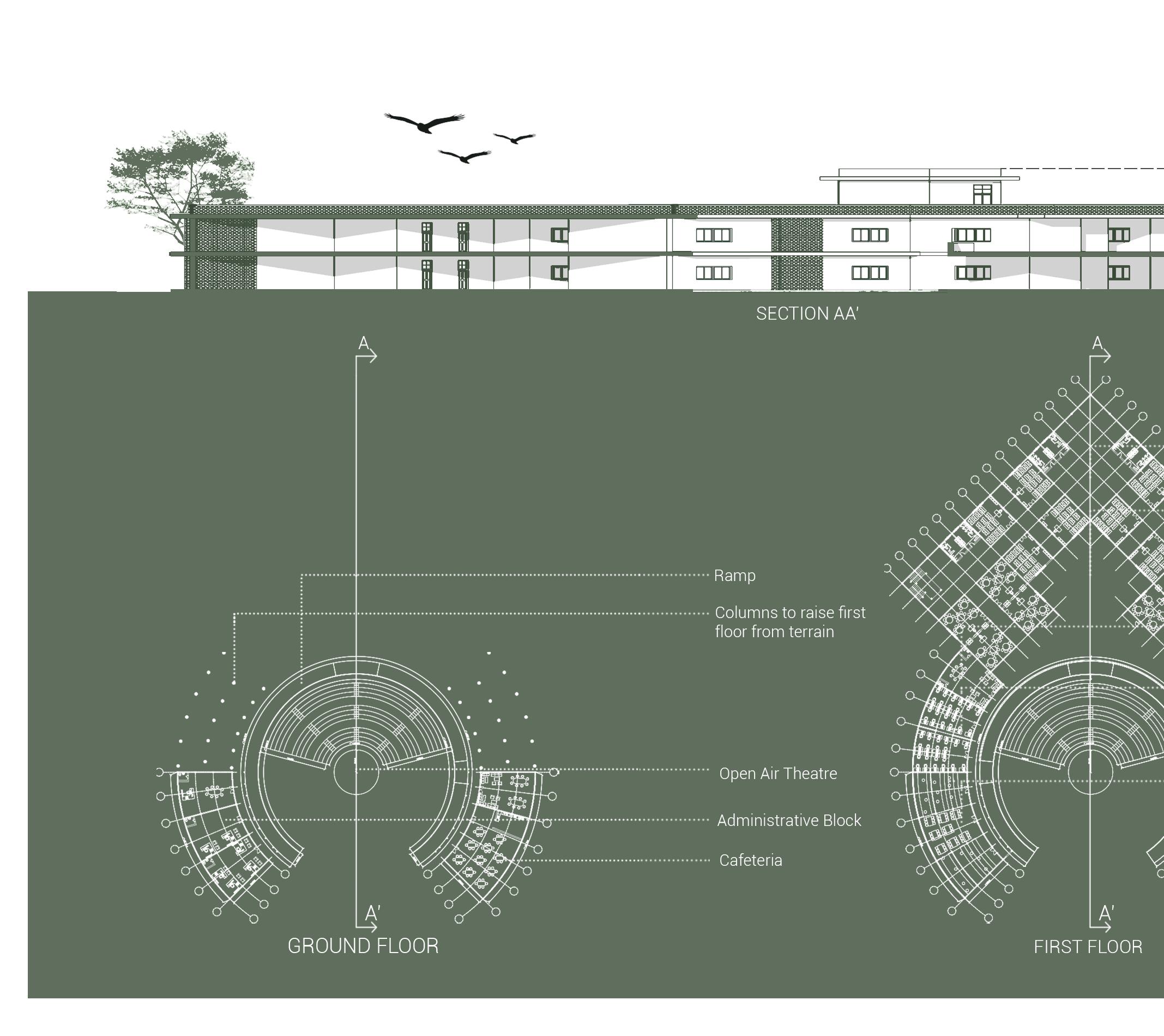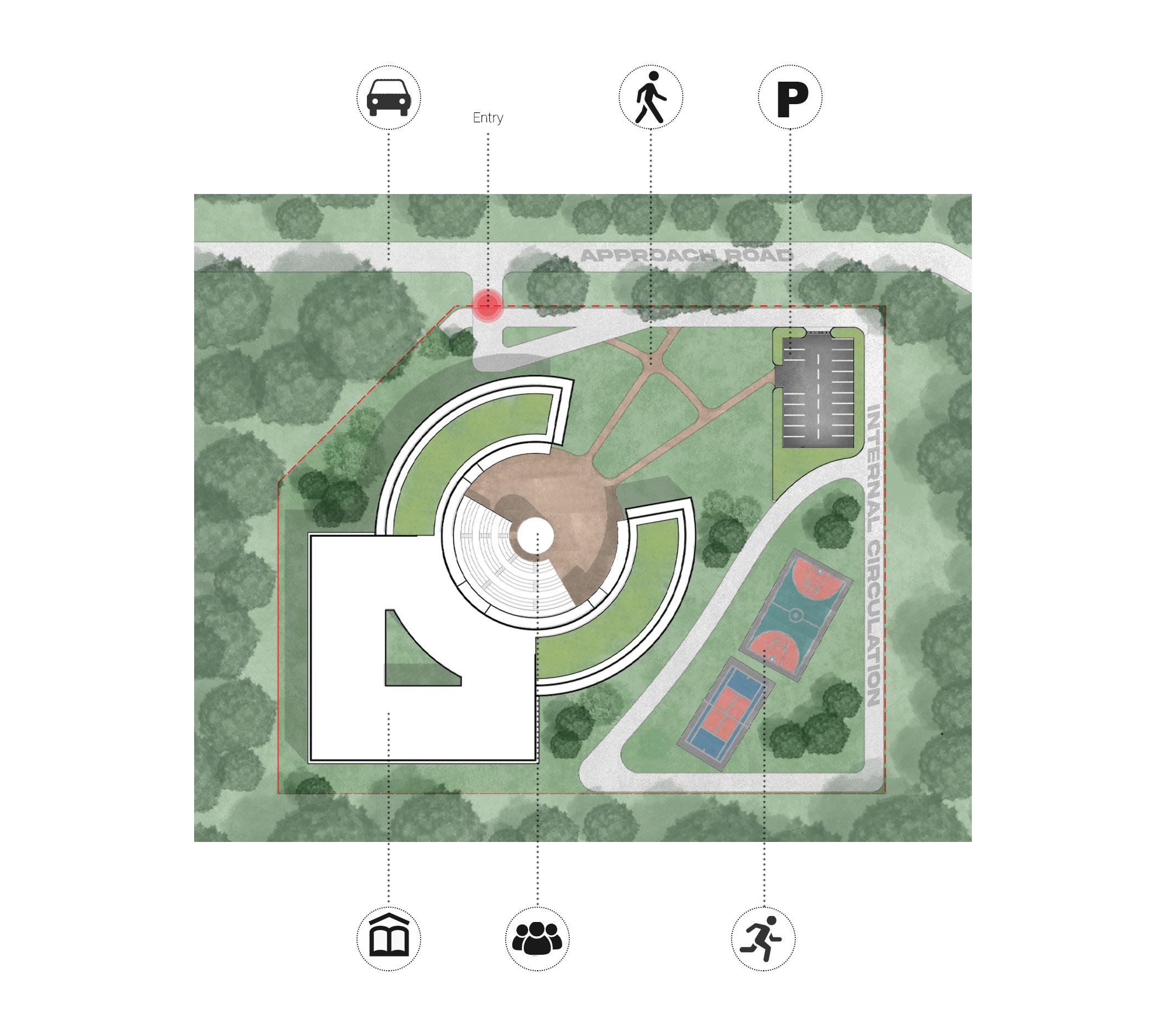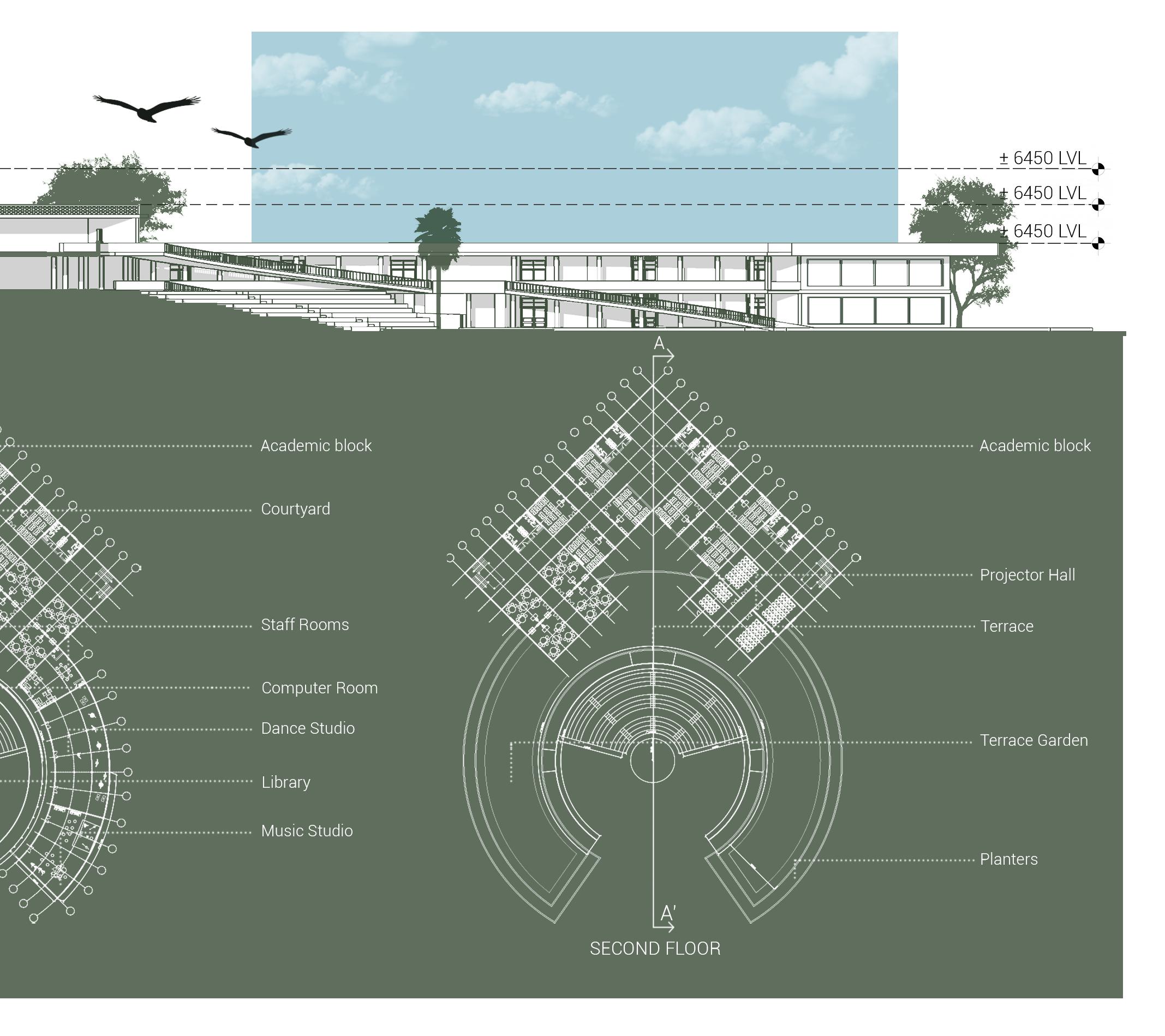 the amphitheatre provides a space for performances, assemblies and other gatherings which are a regular occurring in education institutions.