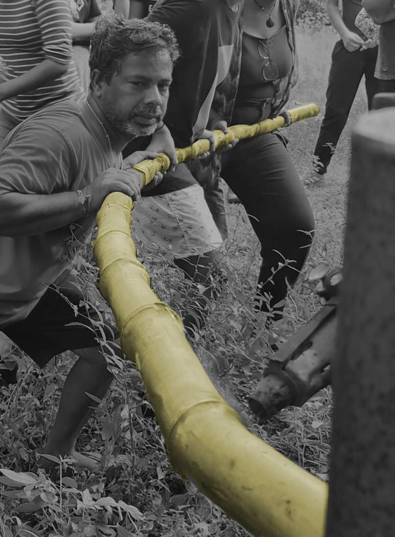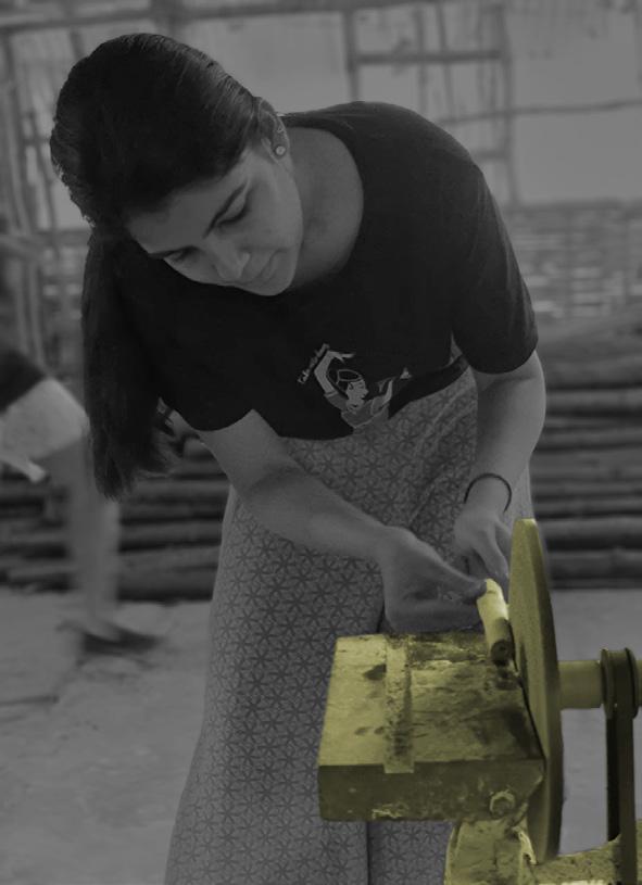 Bamboo comes in all shapes and sizes, to get uniformity, it can be easily processed using basic contruction machines. Here, we can see bamboo being scraped by a metal scraper. This type of processed bamboo is mostly used to make strong joineries. During the workshop we were taught to make the Fish Mouth Joint, which is the most useful and common type used to make structures.
