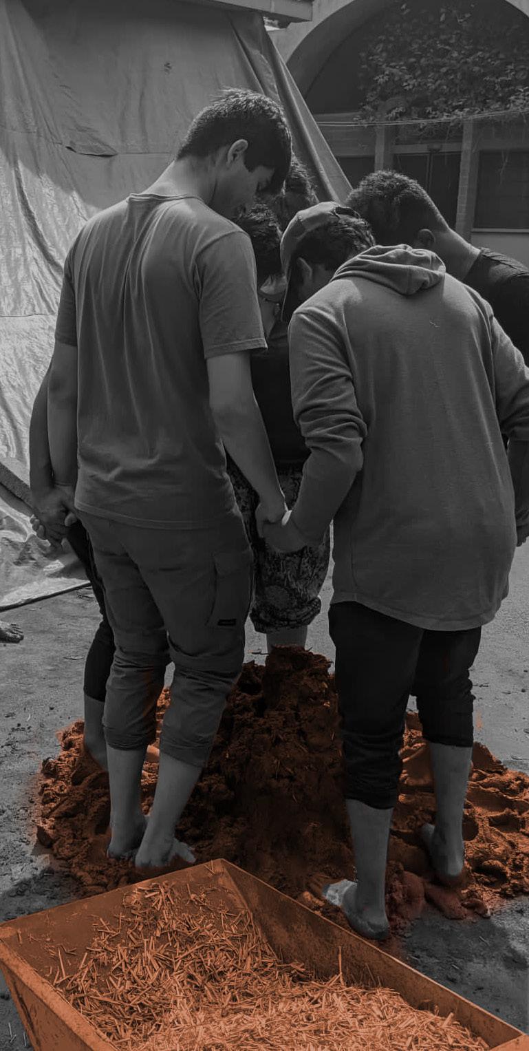 Making of mixture one : It is the more primitive mixture, which derives its origin from mud houses commonly found in rural India, even to this day. The mixture includes mud, husk and water in rough proportions. It is mixed usingfoot or hand and has to be used quickly beforedrying starts. This mixture is used to madea cobb wall or adobe bricks, which are bymodern standards considered to be temporary structures.