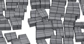 Eni-Met is one of most advanced computational softwares for urban microclimatic analysis. Developed by the University of Bochum, it is a freeware package that allows to analyse urban patches in their microclimatic performance. Envi-Met does not allow to import 3D model data (e.g. In DXF format); the Envi-Met ‘area input file’ is drawn from plan and height information is subsequently assigned by numbers (see diagrams above). To test Envi-Met an example file was set up using one of the early patches created with a genetic algorithm (refer to First Experiments chapter for more information); for all grid cells the soil is set to asphalt; a park (right hand corner) is assigned ‘grass’ as surface material.