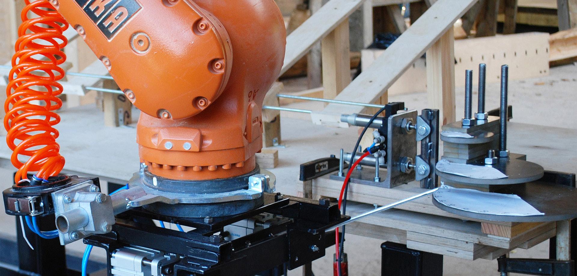 The programme is structured in two stages; initially, participants are introduced to core concepts related to material processes, computational methods, and various digital fabrication techniques during the initial stage. During the second stage, participants propose design interventions based on the skills and knowledge gained during the previous phase, supported by scaled study models and prototypes. Finally, the fabrication and assembly of a full-scale architectural intervention with the use of robotic fabrication techniques unify the design goals of the programme.