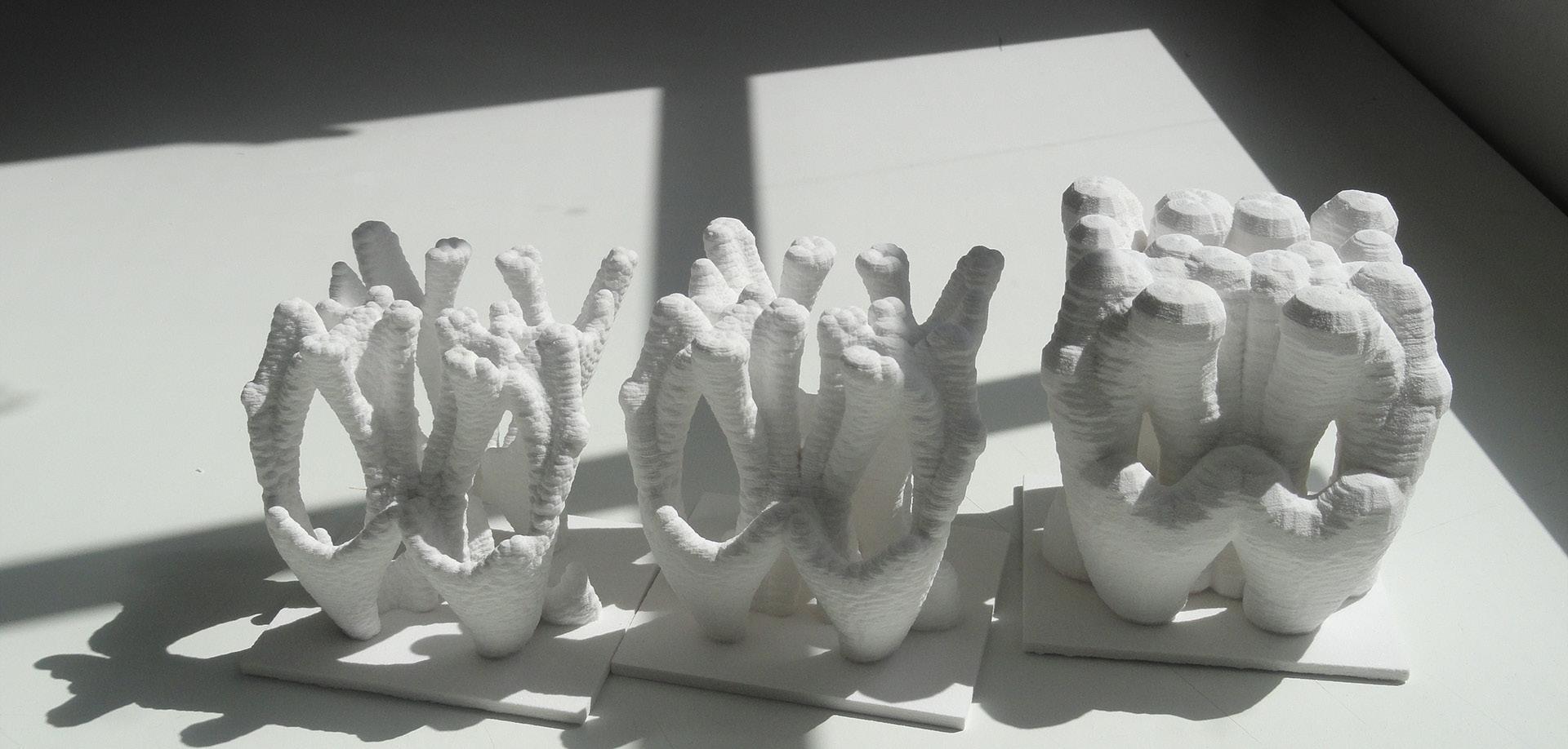fluidly between digital simulations and physical prototypes, ensuring that their designs are informed by both computational accuracy and real-world feasibility. Each stage of this process provides valuable insights into material properties and fabrication techniques, allowing students to refine their digital designs in response to the challenges and possibilities encountered in physical production.