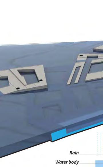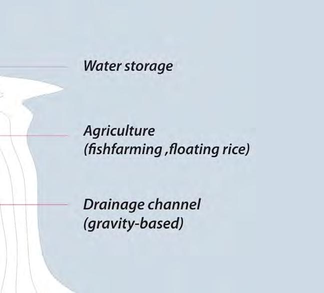 The final result as a hydrological village in Southeast Asia is an integration of residential blocks, agricultural facilities, public facilities, water defences, water storages and water drainage systems. Its relationship with water can be compared to the permeation of cell membrane as it is defending, storing and retaining water from natural all the time to balance between human’s requirements and environmental capacity.