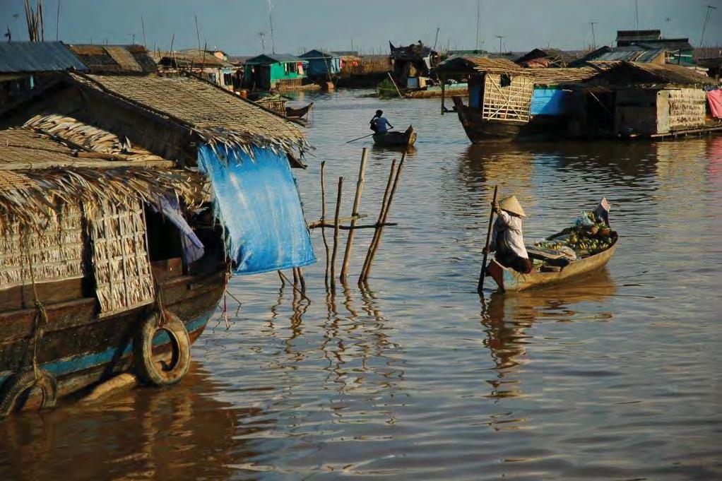 A Cambodian floating village located on Tonle Sap Lake(Mekong river basin) is suffering tropical monsoon annually, and the villagers live in stilt house or boathouse to adapt to the changing water level. In wet season they live on fishing and rice cultivation; in dry season, the original hydro culture makes this village a tourist attraction spot. As a result, their live hood varies according to the periodic season change.