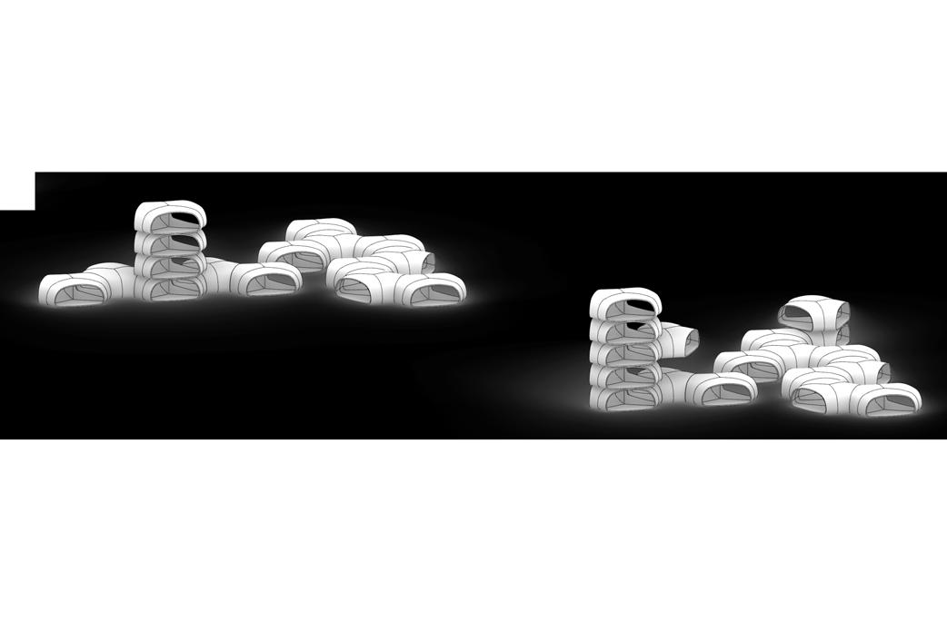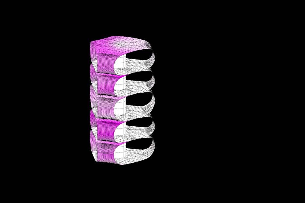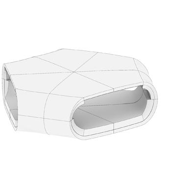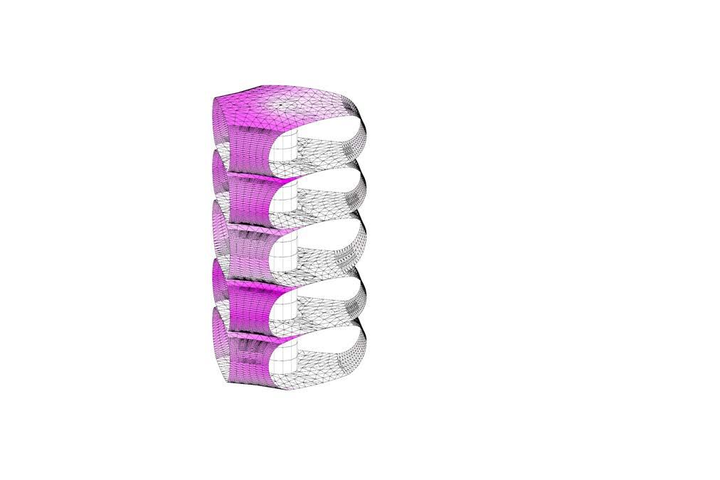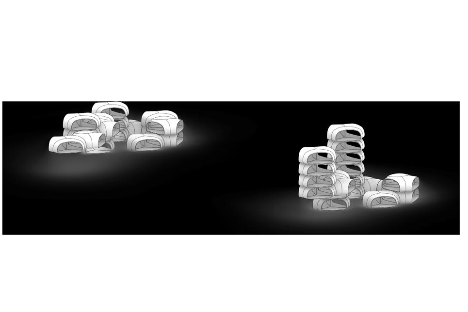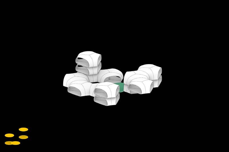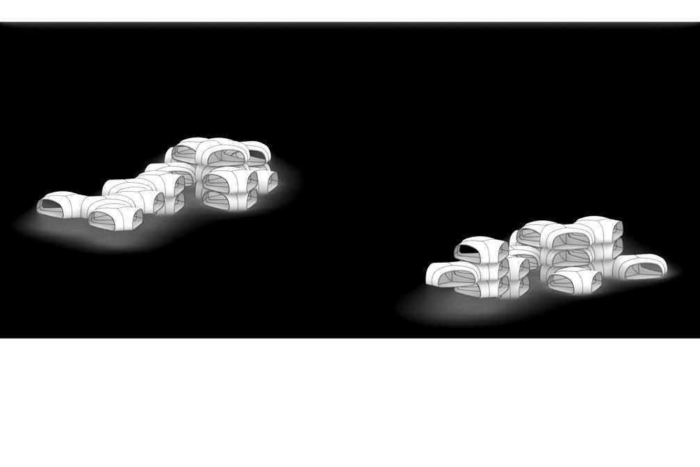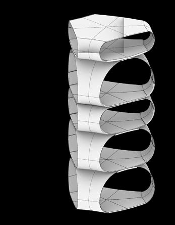 The material system is then evaluated for its structural performance and how it can be fabricated and implemented at the building scale. The material system is integrated into the design of modular housing units, the design explores the various range of curved timber panels that can be achieved and articulated into interesting morphologies. A comprehensive structural analysis indicates the suitability of the curved panels to be used as various load-bearing elements within the building system. Further geometric studies investigate how the curved timber modules can be aggregated to define well-connected spaces while emphasizing the structural logic