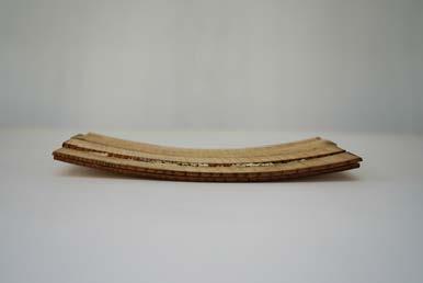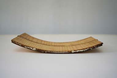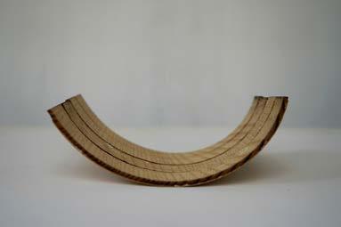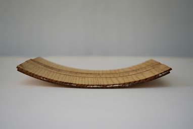 Like many other natural materials, wood is hygroscopic (ability to absorb moisture), thereby it gains or loses moisture from its surrounding environment which leads to swelling or shrinkage in its size according to the magnitude of the change. Wood contracts and expands in different ways with respect to the direction of the growth rings and in the grain’s direction (Anisotropic property). These inherent properties of wood are studied as an intent to develop an efficient fabrication technique for manufacturing curved pieces of timber.