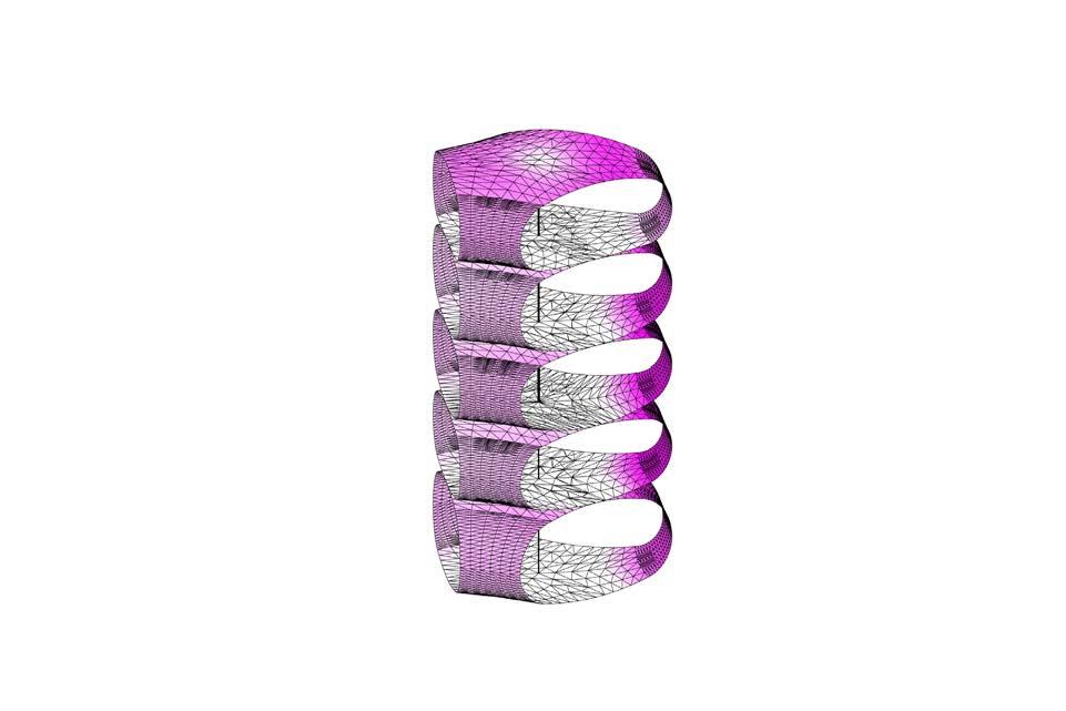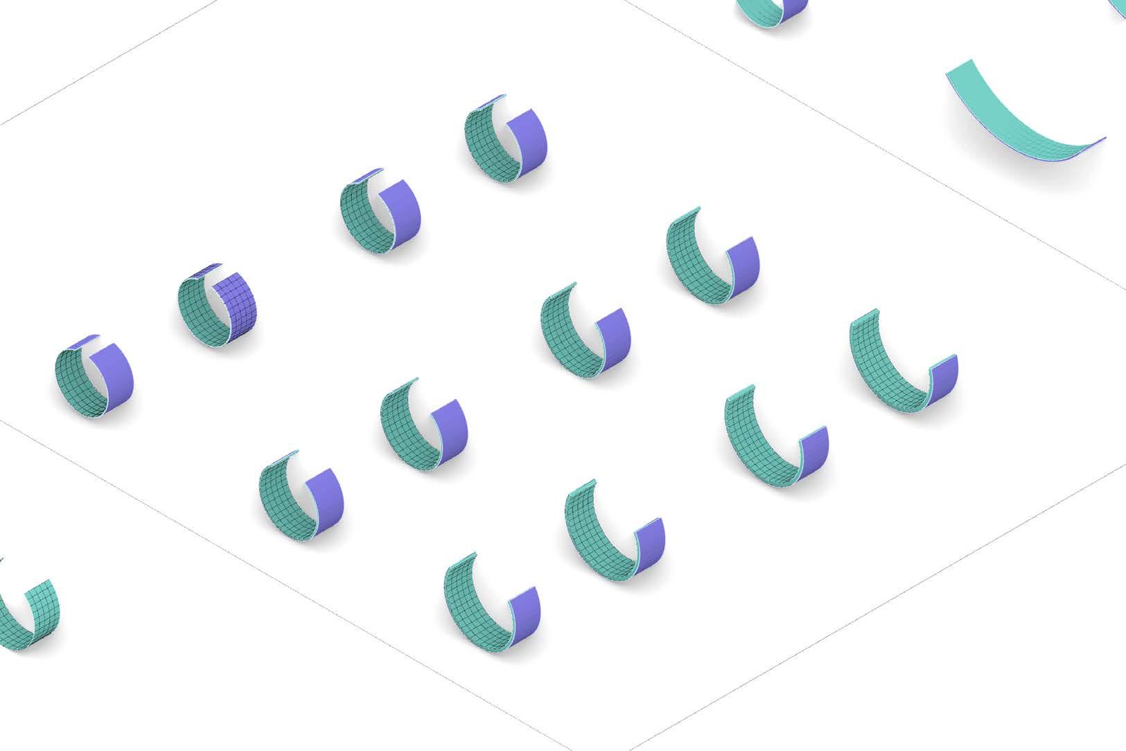 The process considers the proceeds derived from the physical and digital experiments enabling efficient manufacturing and fabrication of timber panels which can be articulated into a coherent building system. Experiments on the material systems’ structural performance on different levels of the projects will follow, we combine the results to develop a dynamic model which can be programmed create a range of curvature within the system’s structural limitations.