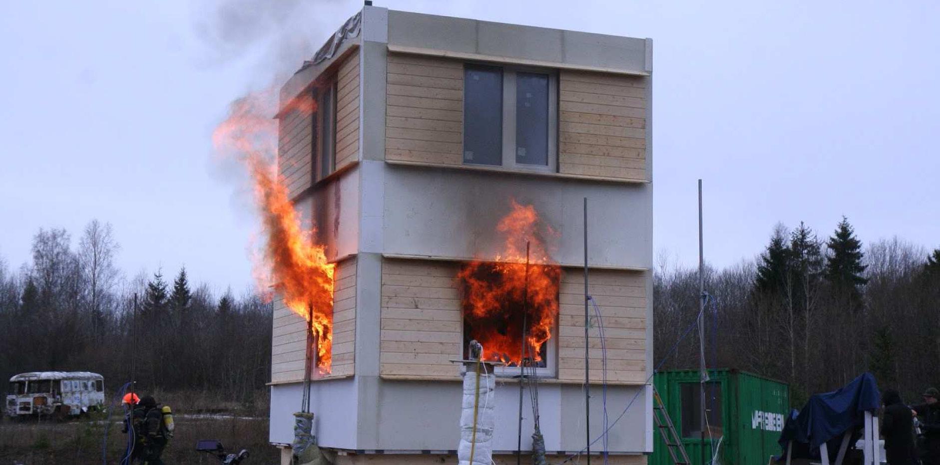 PIC.8Large-scale compartment fire test conducted by the Institute of Civil Engineering and Architecture-Tallinn University of Technology demonstrates the self-extinguishment of a twostorey CLT house. Different joints and new fire resistant products were tested in the experiment.
