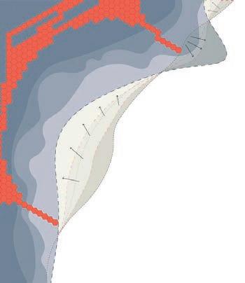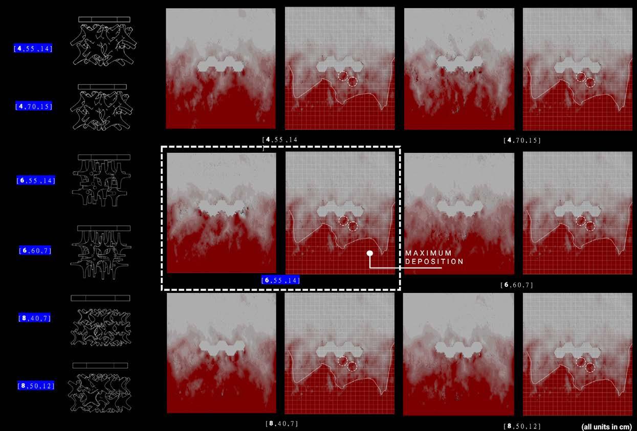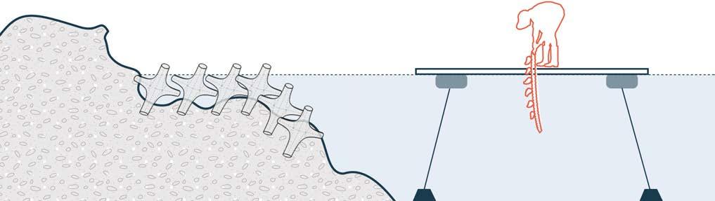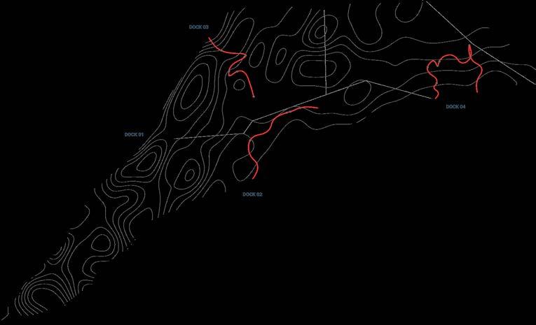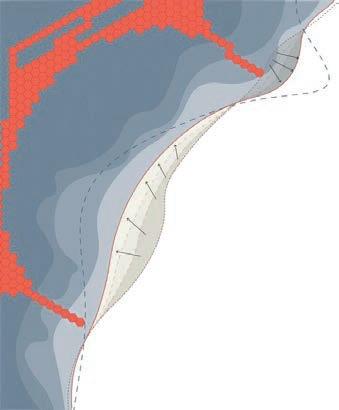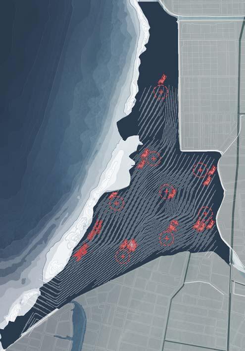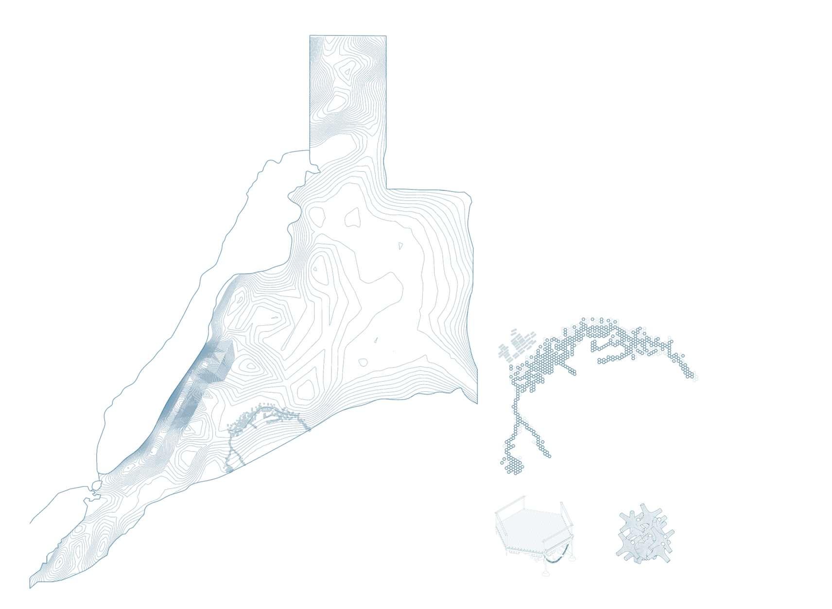 predictive tools for controlled scouring, combining bathymetric analysis with fluid-dynamics-informed simulations. Targeted underwater erosion modules and a reconfigurable architectural spine are developed to recalibrate lagoon depths while supporting movement, access, and seasonal occupation above water.