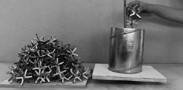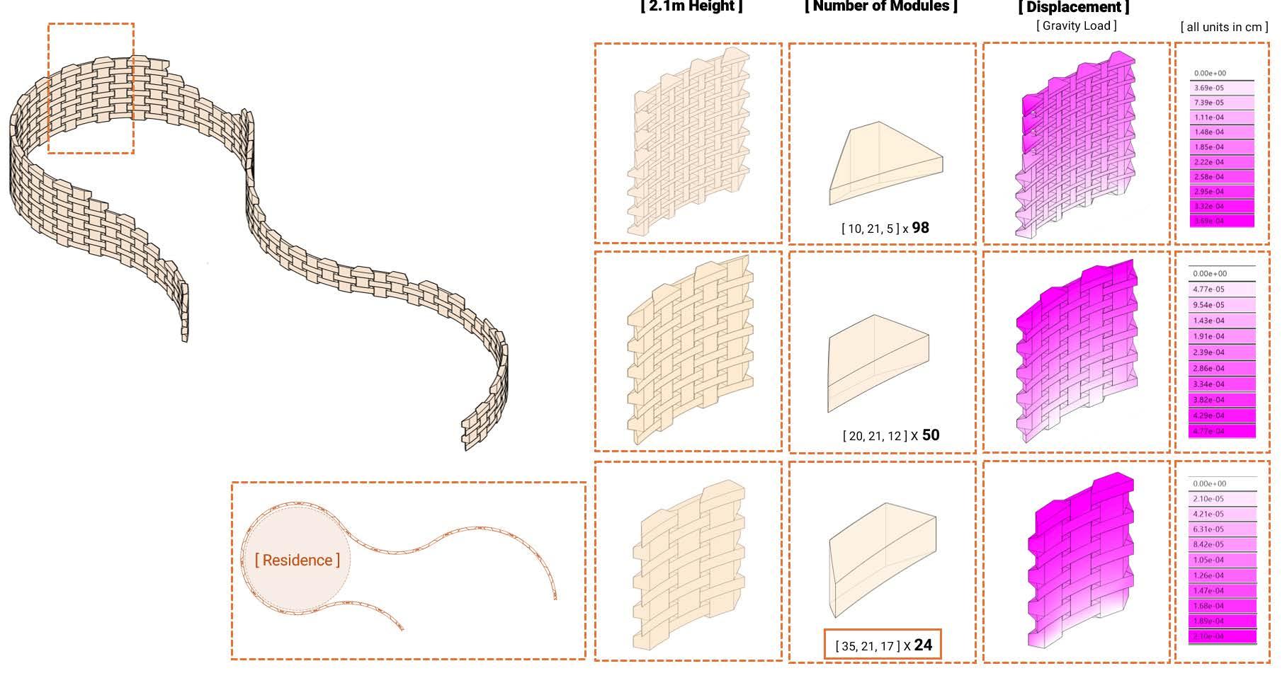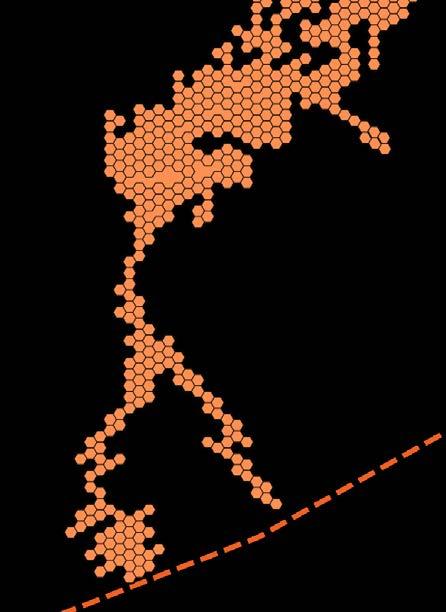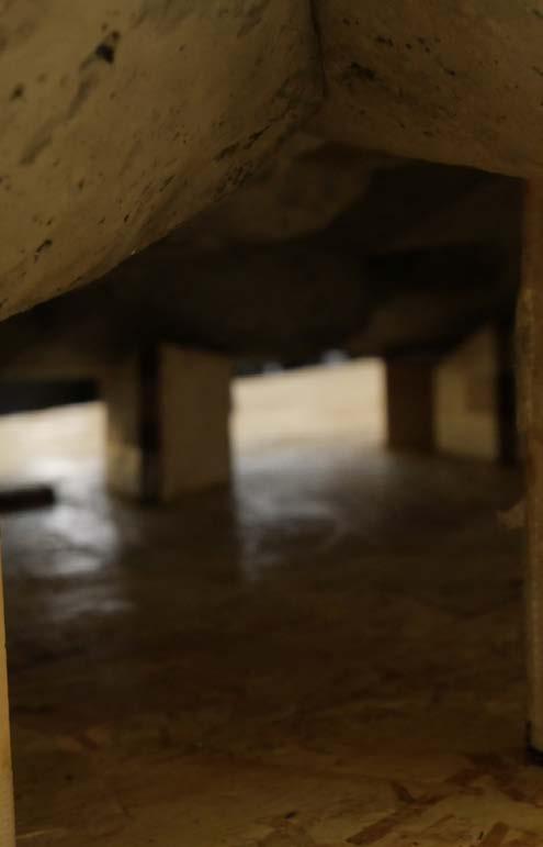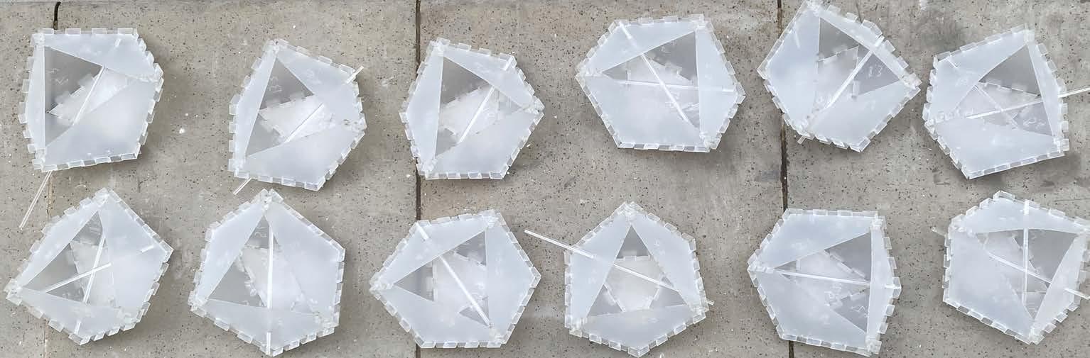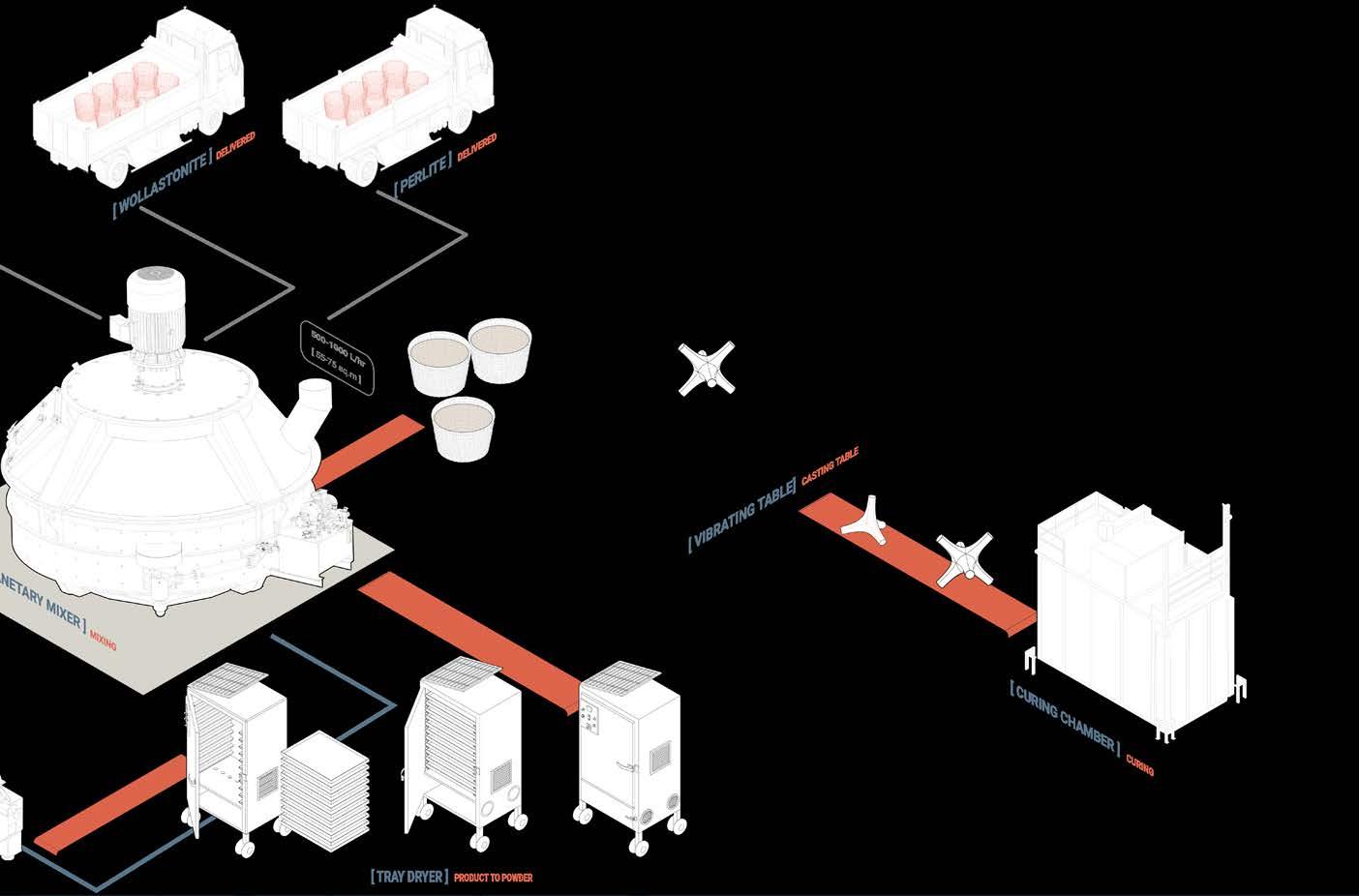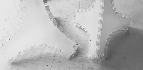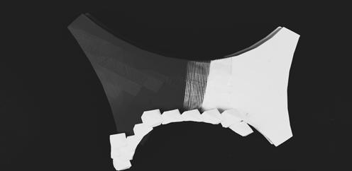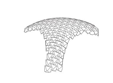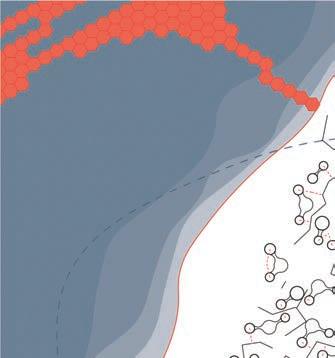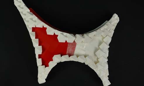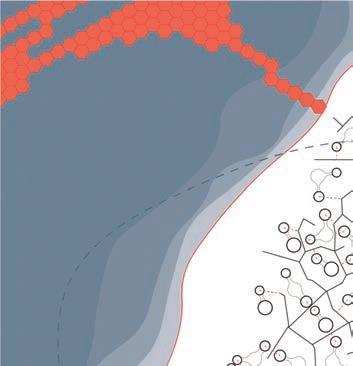 The oyster shell becomes the primary architectural and material starting point in this phase. By crushing, recombining, and casting discarded shells into modular units, the research explores how material behaviour can shift across conditions. Offshore, shellbased modules operate through aggregation and jamming, redirecting sediment deposition. Onshore, the same modules transition into deterministic systems of topological interlocking, forming stable funicular shells, platforms, and residential units embedded within the regenerated landform. This continuum—from loose aggregation to controlled assembly—frames a second, material-driven hypothesis: that emergent interlocking systems can adapt across different lagoon zones while remaining materially and ecologically grounded.