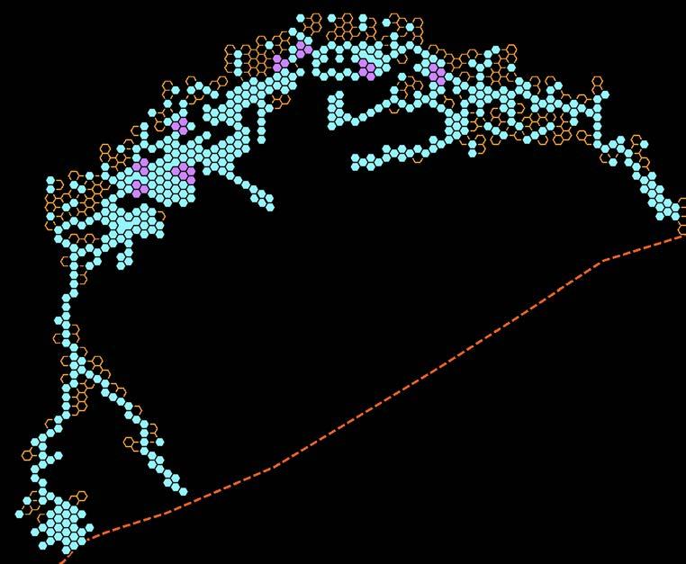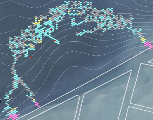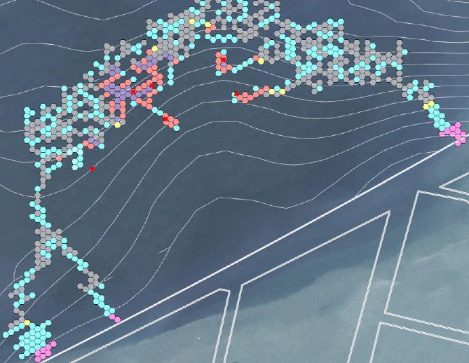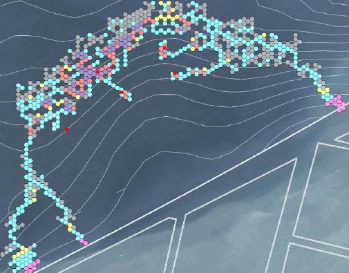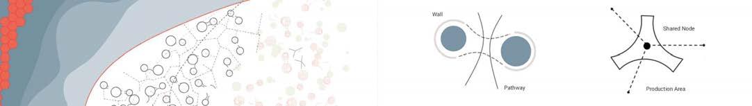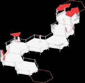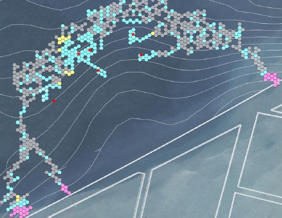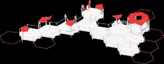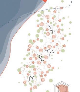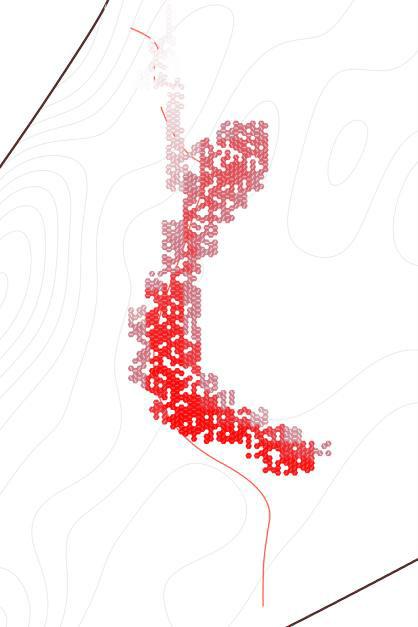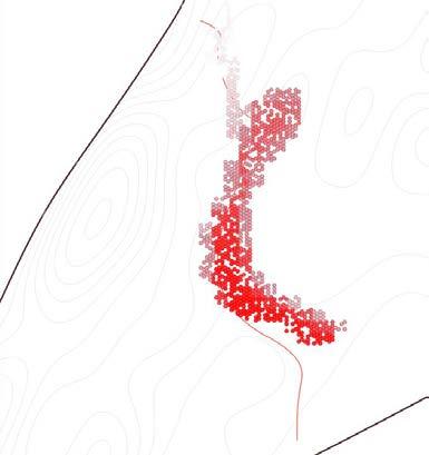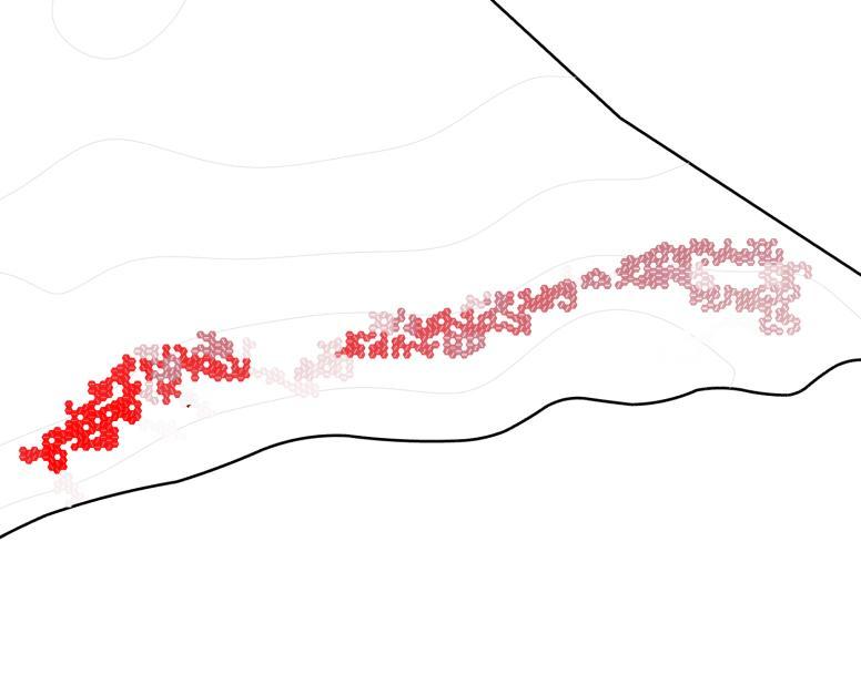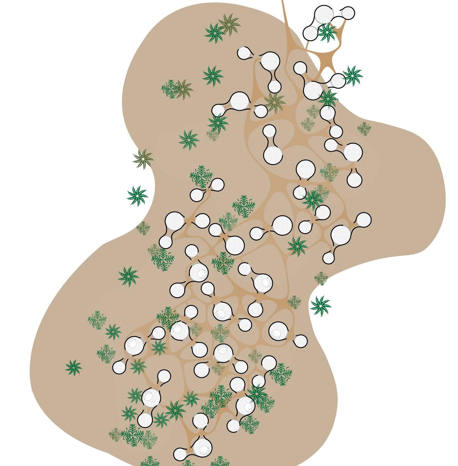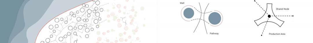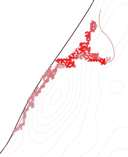 From these updated intervention points, new routes are generated and aggregated using the base state of platform modules in their inactive configuration. These aggregations initially exist as spatial potentials rather than active infrastructure, defining possible pathways, clusters, and nodes without immediate programme assignment. The aggregation sets illustrated in the accompanying images are then subjected to a subsequent phase of spatial activation, during which specific scenarios are selected, and modules are reactivated according to seasonal and operational requirements.