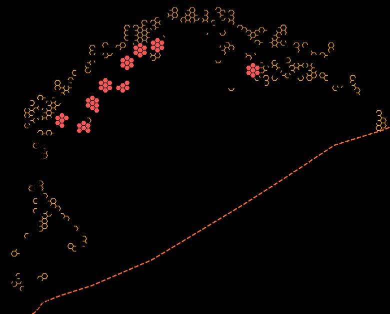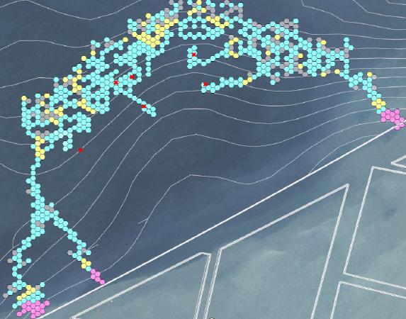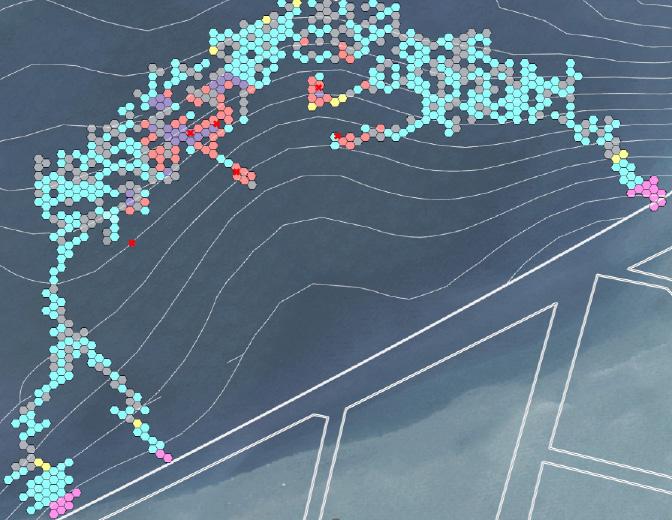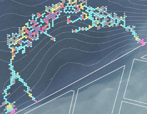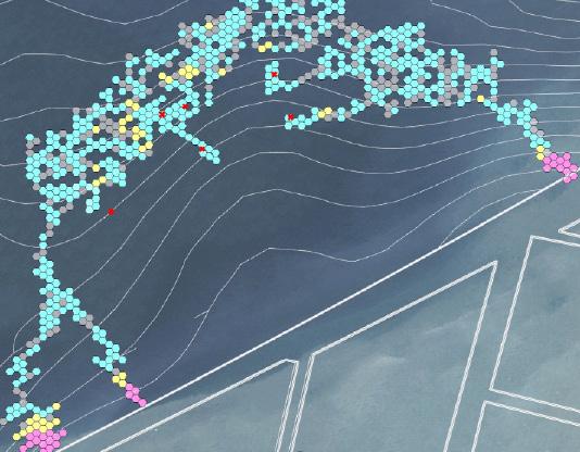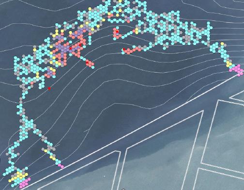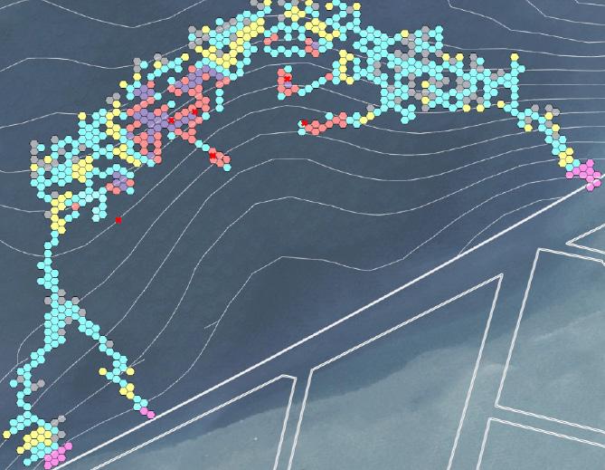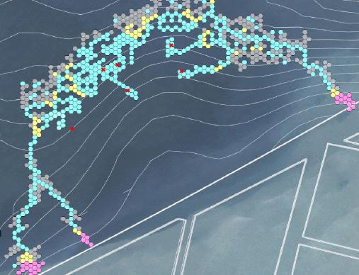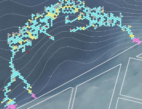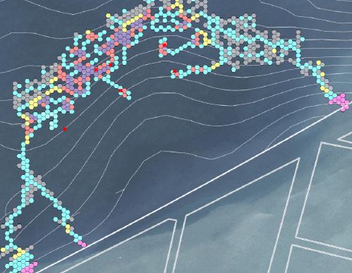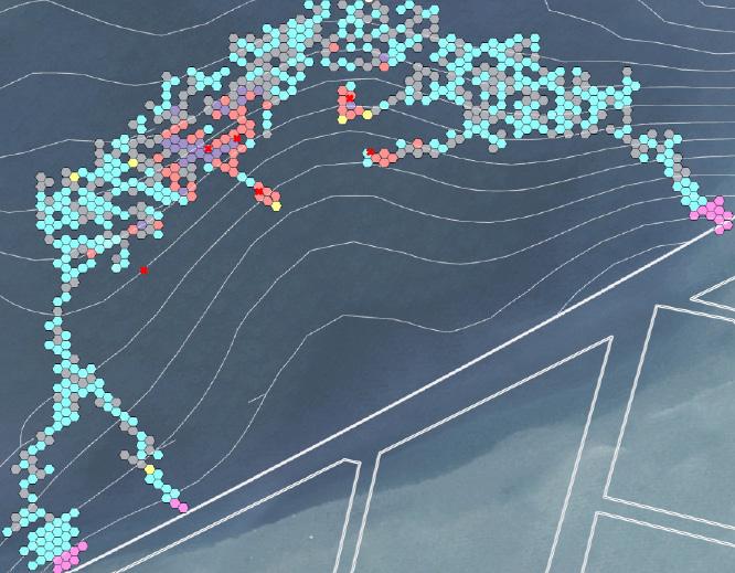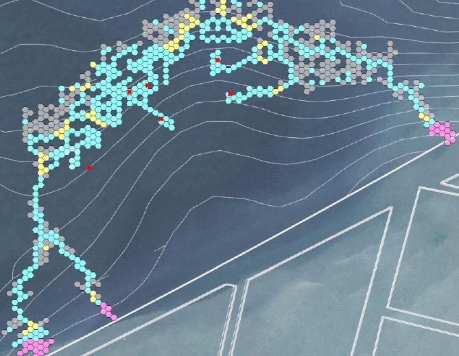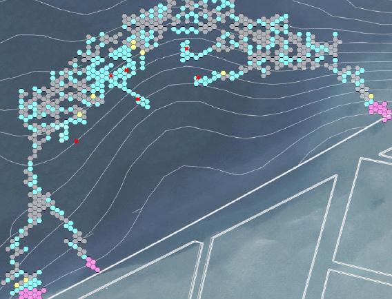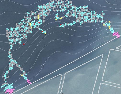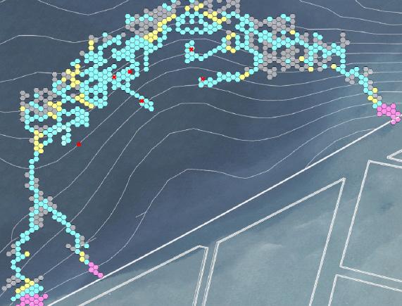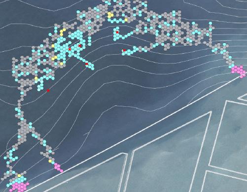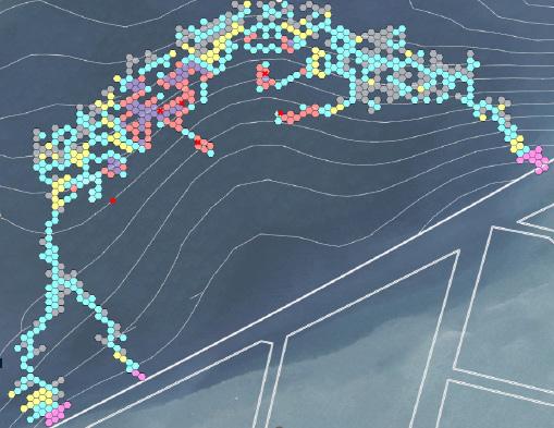 From these updated intervention points, new routes are generated and aggregated using the base state of platform modules in their inactive configuration. These aggregations initially exist as spatial potentials rather than active infrastructure, defining possible pathways, clusters, and nodes without immediate programme assignment. The aggregation sets illustrated in the accompanying images are then subjected to a subsequent phase of spatial activation, during which specific scenarios are selected, and modules are reactivated according to seasonal and operational requirements.
