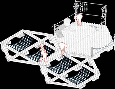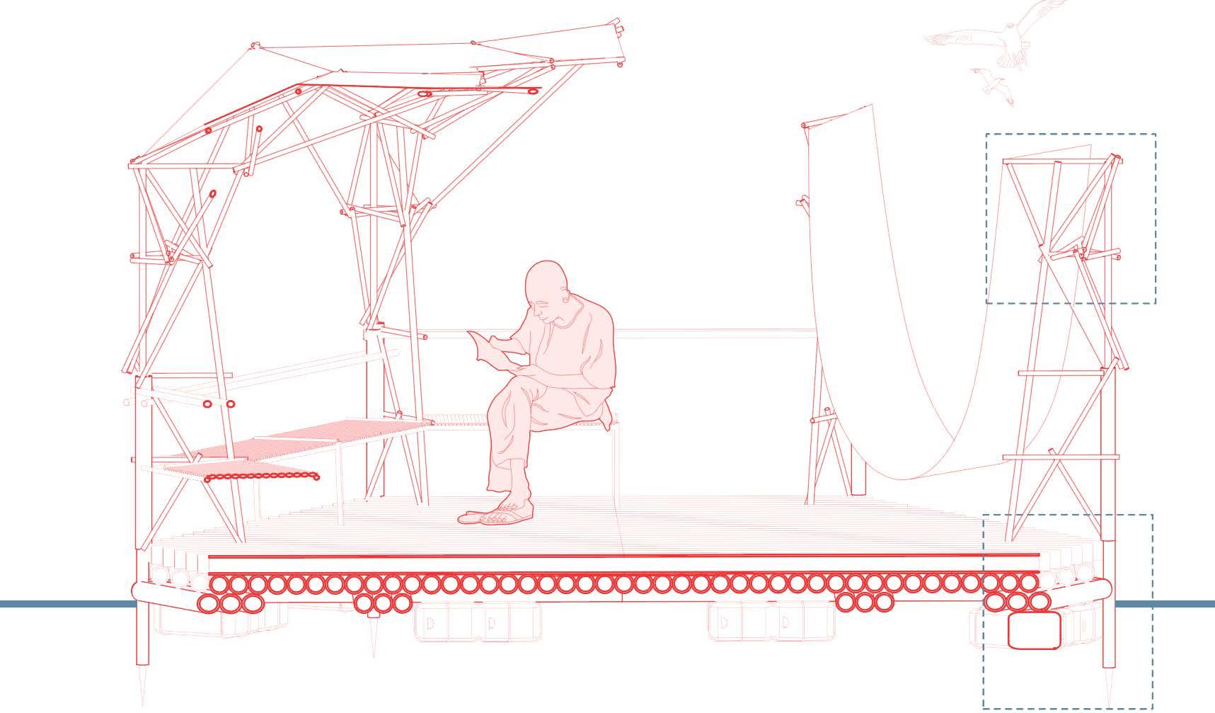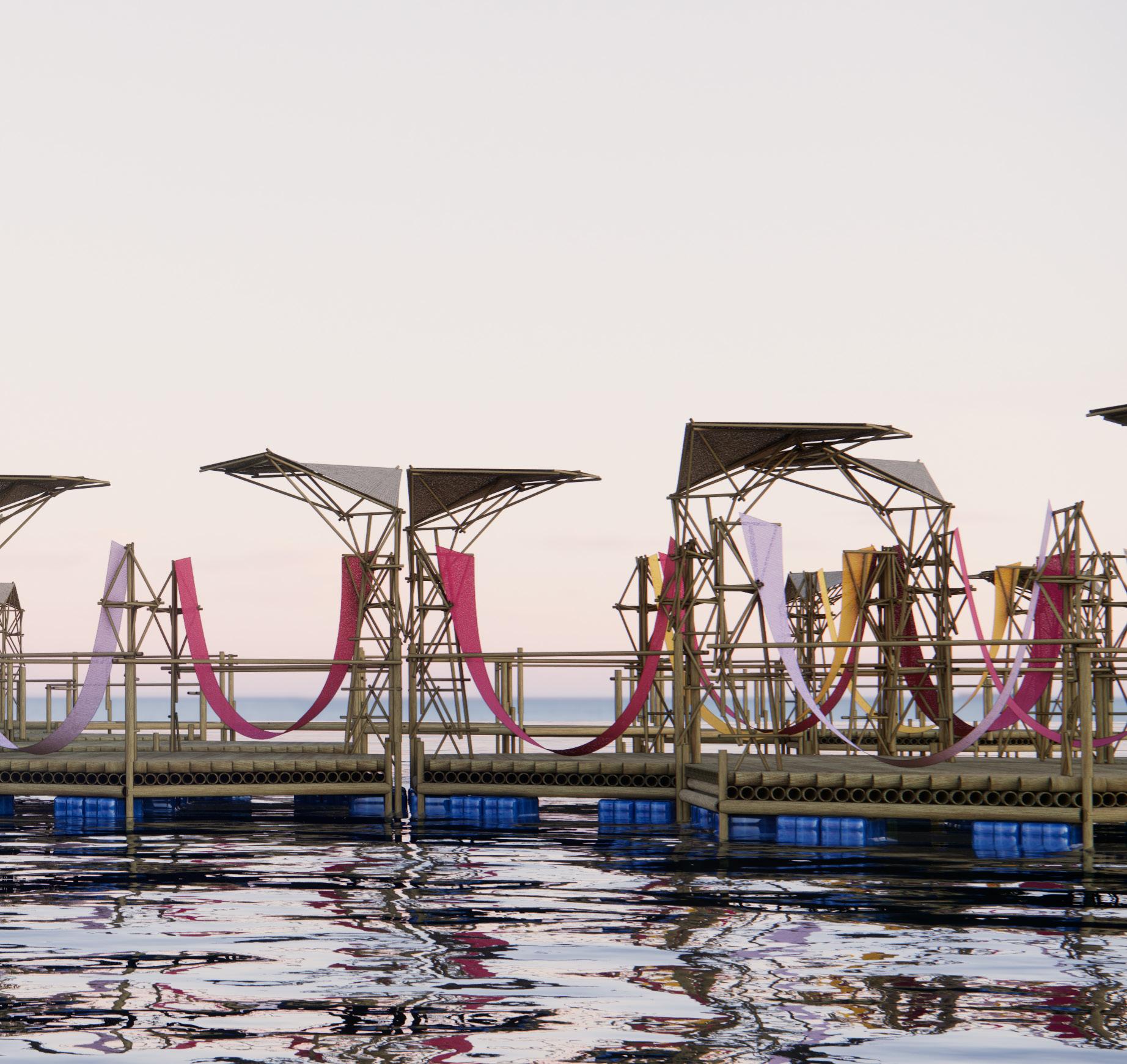 At the social scale, the platform infrastructure introduces flexible spatial arrangements that support aquaculture practices alongside seasonal public use. Its mobility enables configurations to shift in response to changing demands while maintaining continuous access. The project also acknowledges that such adaptability requires coordination and shared responsibility that extend beyond architectural design. Social organisation and governance thus emerge as necessary conditions for long-term viability.