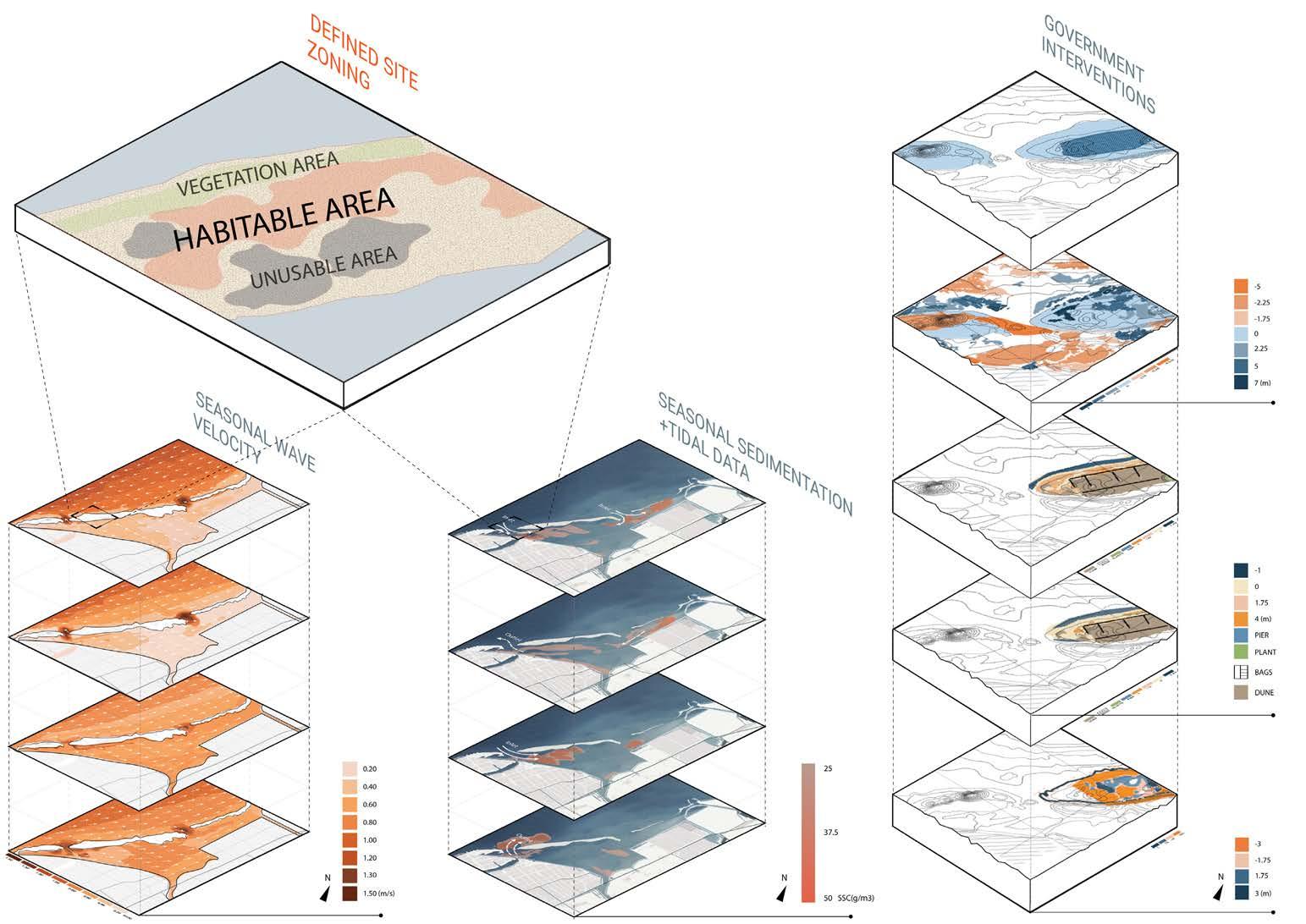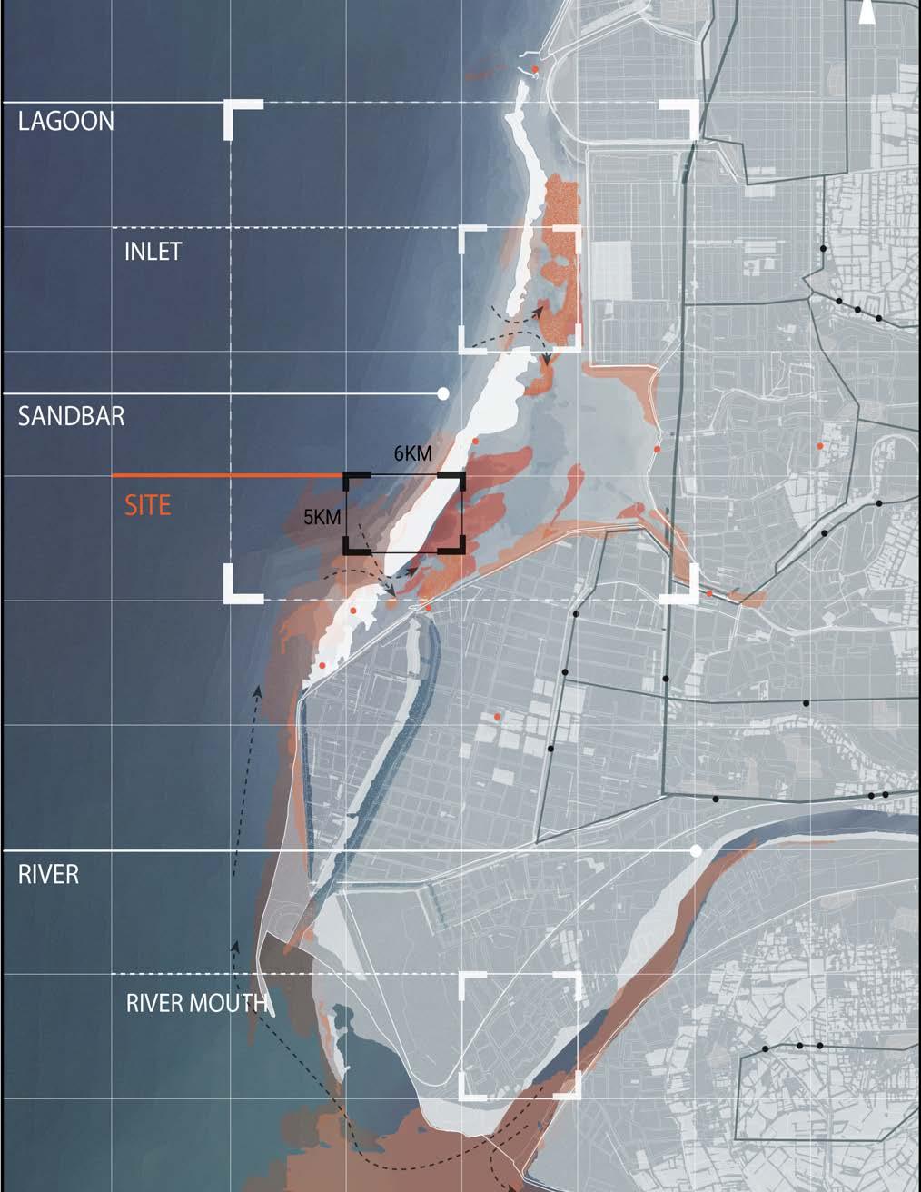 This dissertation positions architecture as a mediating discipline capable of operating across these interdependencies. Rather than proposing static solutions, the research investigates how architectural systems can engage directly with sediment behaviour, material cycles, and water dynamics to support both ecological processes and human occupation. Central to this inquiry is a shift from resisting change to working through it—allowing infrastructure and