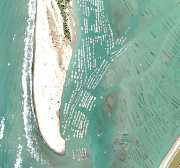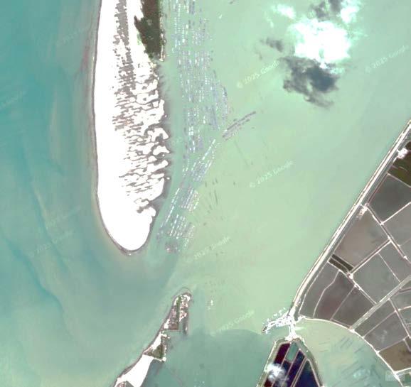 The Qigu Lagoon in southwest Taiwan exemplifies this condition. As the lagoon’s sandbar continues to erode and migrate inland, sediment carried by the Zengwun River accumulates within the lagoon, progressively reducing depth and restricting water circulation. Oyster farming, which forms the economic and social backbone of the region, is increasingly constrained to limited deep-water zones near the southern opening.