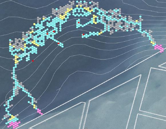 The initiation of a new cycle begins with analysing scouring outcomes from the previous phase. Bed morphology data is re-evaluated to identify areas where sediment has been effectively mobilised. Based on this analysis, in the zones where scouring has been insufficient, and regions that may now require protection rather than further intervention, new intervention points are identified, enabling the system's spatial logic to evolve in response to the lagoon’s changing conditions.