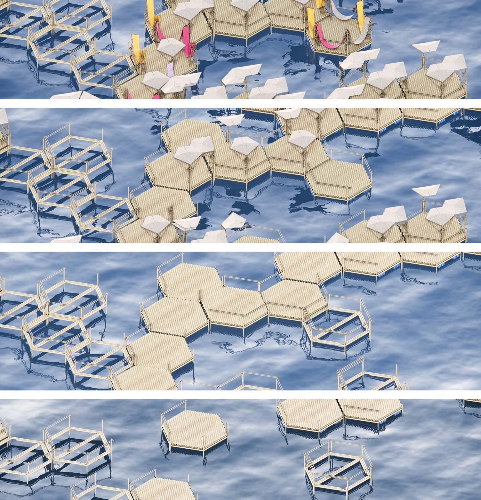 At the same time, the project remains limited by its degree of social embedding. While it proposes spaces for economic activity and leisure, it does not yet fully articulate governance structures, ownership models or maintenance responsibilities. There is also a risk that increased tourist accessibility could introduce spatial conflicts, particularly if visitor activities begin to interfere with aquaculture operations.