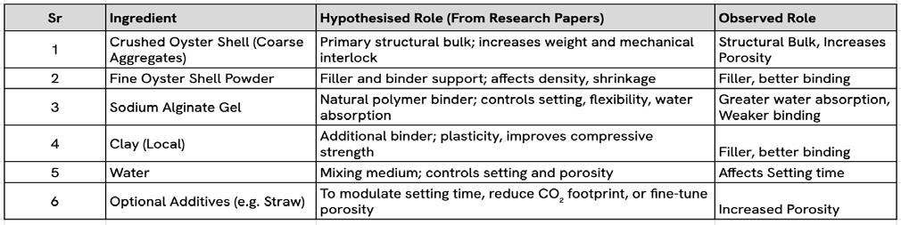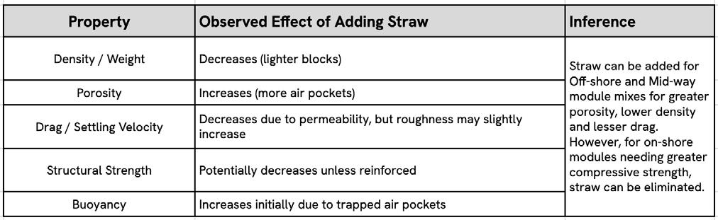 However, the experiments also reveal notable limitations. The mechanical performance of the composite remains sensitive to variations in binder ratios, curing conditions and water content. Tensile and flexural weaknesses persist, limiting the extent to which the material can be used in above-water or load-bearing architectural components without additional reinforcement. Long-term durability under repeated tidal cycles and biological activity remains insufficiently tested, introducing uncertainty regarding lifespan and maintenance.