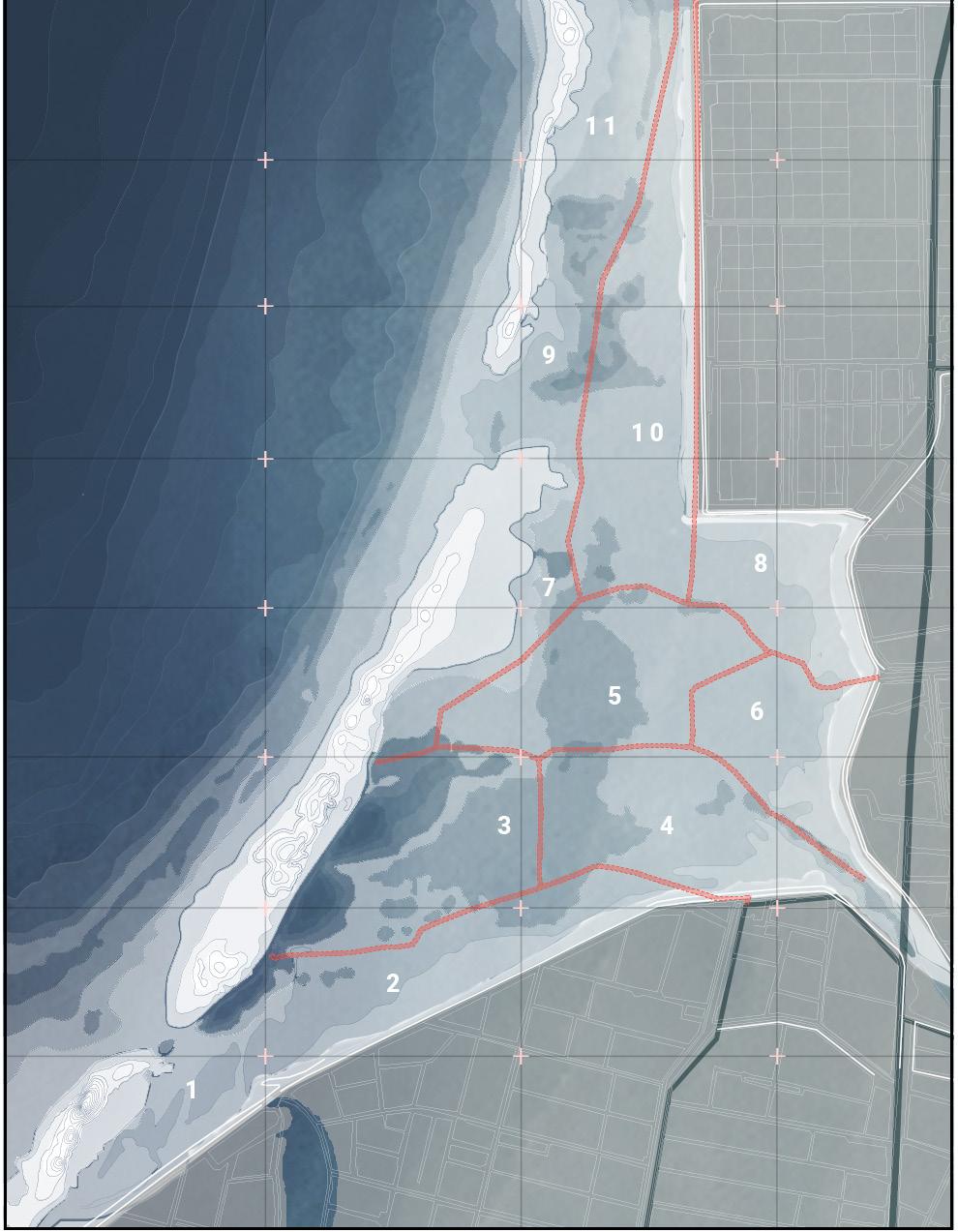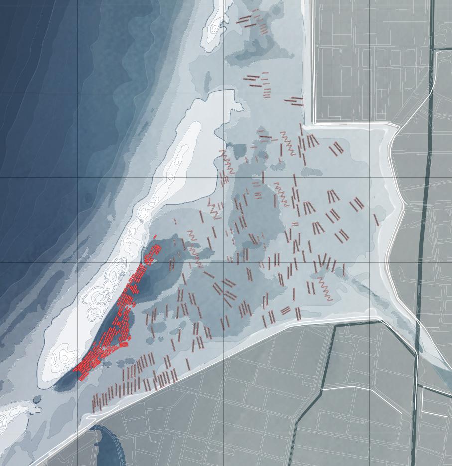 The research demonstrates how bathymetric analysis and digital modelling can inform site-specific intervention while remaining open to recalibration. Depth variation and flow behaviour are mobilised as spatial drivers that guide placement, sequencing, and withdrawal of infrastructure. Computational tools support decision-making under uncertainty by outlining behavioural tendencies within the lagoon system. Their value lies in enabling continuous adjustment as environmental conditions shift across seasonal and longer temporal cycles.