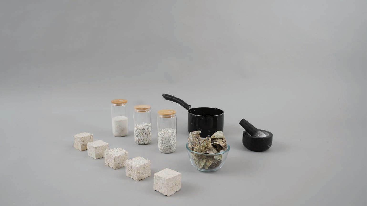 We are grateful to Álvaro Velasco Pérez, Abhinav Chaudhary and Danae Polyviou for their thoughtful contributions, discussions and feedback at critical moments of the project. We would also like to acknowledge the Oystermen restaurant in Covent Garden for kindly supplying discarded oyster shells, without which the material investigations and experimental work would not have been possible.