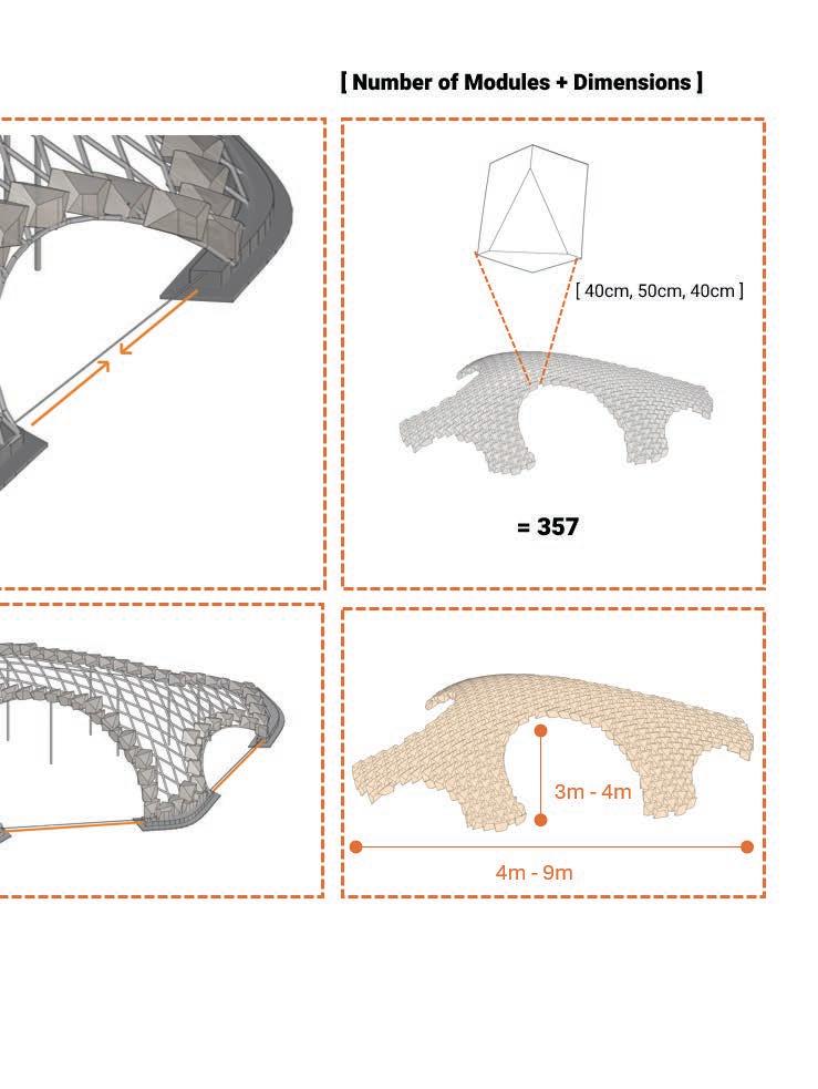 A critical future direction lies in the material’s capacity for reuse and reprocessing. The project raises the question of whether broken-down obstacle modules or decommissioned funicular shells can be crushed and reintroduced as coarse aggregates within new composite mixes. However, this circular strategy requires further experimental validation, including tests on aggregate gradation, residual binder interference, strength loss across generations and cumulative porosity changes. If optimised, this approach could enable a regenerative material cycle.