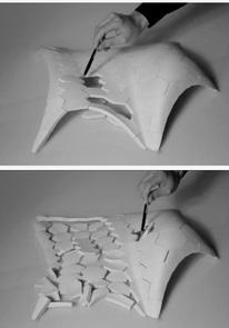 The live feedback loop between surface analysis (displacement) and mesh relaxation created libraries of such shell structures. The individual solutions from these libraries