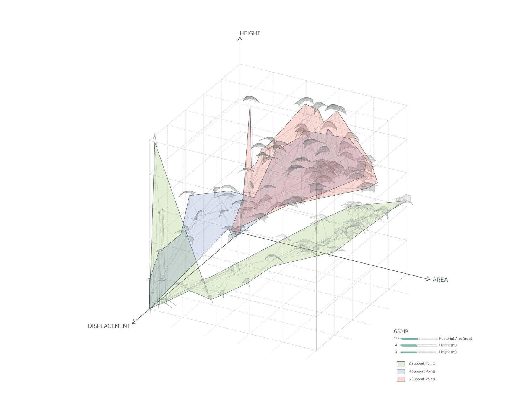 could then be categorized based on the desired use. A major limitation in this approach, however, was the lack of any dynamic structural analysis within the live feedback loop. This was because of the software limitation of not having a compatible tool within Grasshopper3D that was capable of achieving such seismic analyses. Nonetheless, it was a very interesting exercise to understand various ways in which forces act (static forces, in this case) and how the structural analysis data can be used to inform the design process, in effect creating a holistic approach to design. The knowledge gained in this process, can definitely not only within this dissertation, but also in other projects in the future.