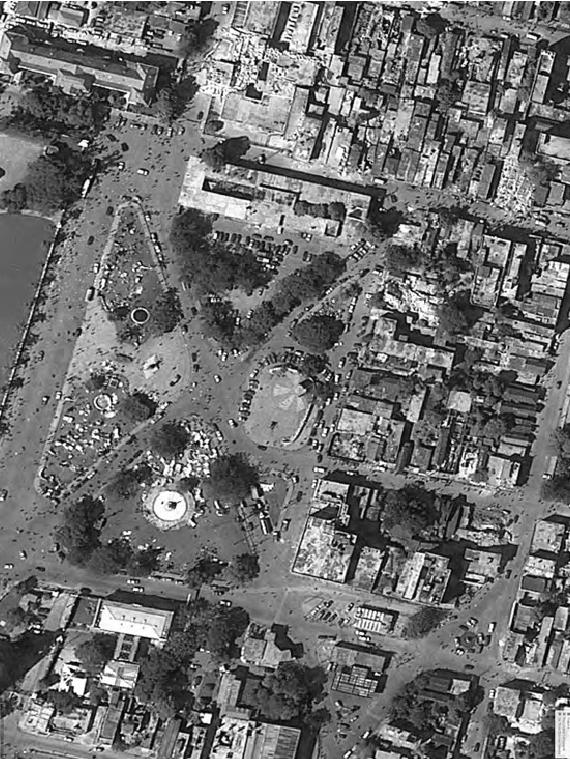 Satellite images provide a very good tool that enable to analyse the aforementioned urban scenario, before the earthquake, on the very day, and for a long period of time during the recovery of the city. Google Earth satellites recorded the images for the Haitian capital for several days in a row after the disaster, allowing to recognize and analyse the resulting patterns of people, building damages, road blockages, temporary shelters camps and so on. Such techniques is eventually a common practice for experts to study and asses damages occurred in cities after earthquakes, and it’s called Multitemporary Satellite Imagery (Adams). Though a very interesting topic, this dissertation will not deal with it.