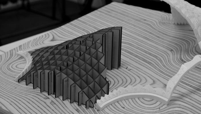science and workings of topologically interlocking blocks. A brick was developed with sinusoidal surfaces on all four sides, which correspond to other bricks’ surfaces, thus creating a complementary, non-planar interlocking. This approach was studied in depth, both physically and digitally, to conclude that such a solution is indeed viable as an earthquake-resistant construction technique. Taking this as a domain for further research in this field, this MArch dissertation focusses more on creating an architectural solution using this system, taking in mind the urban aspect of the proposal.