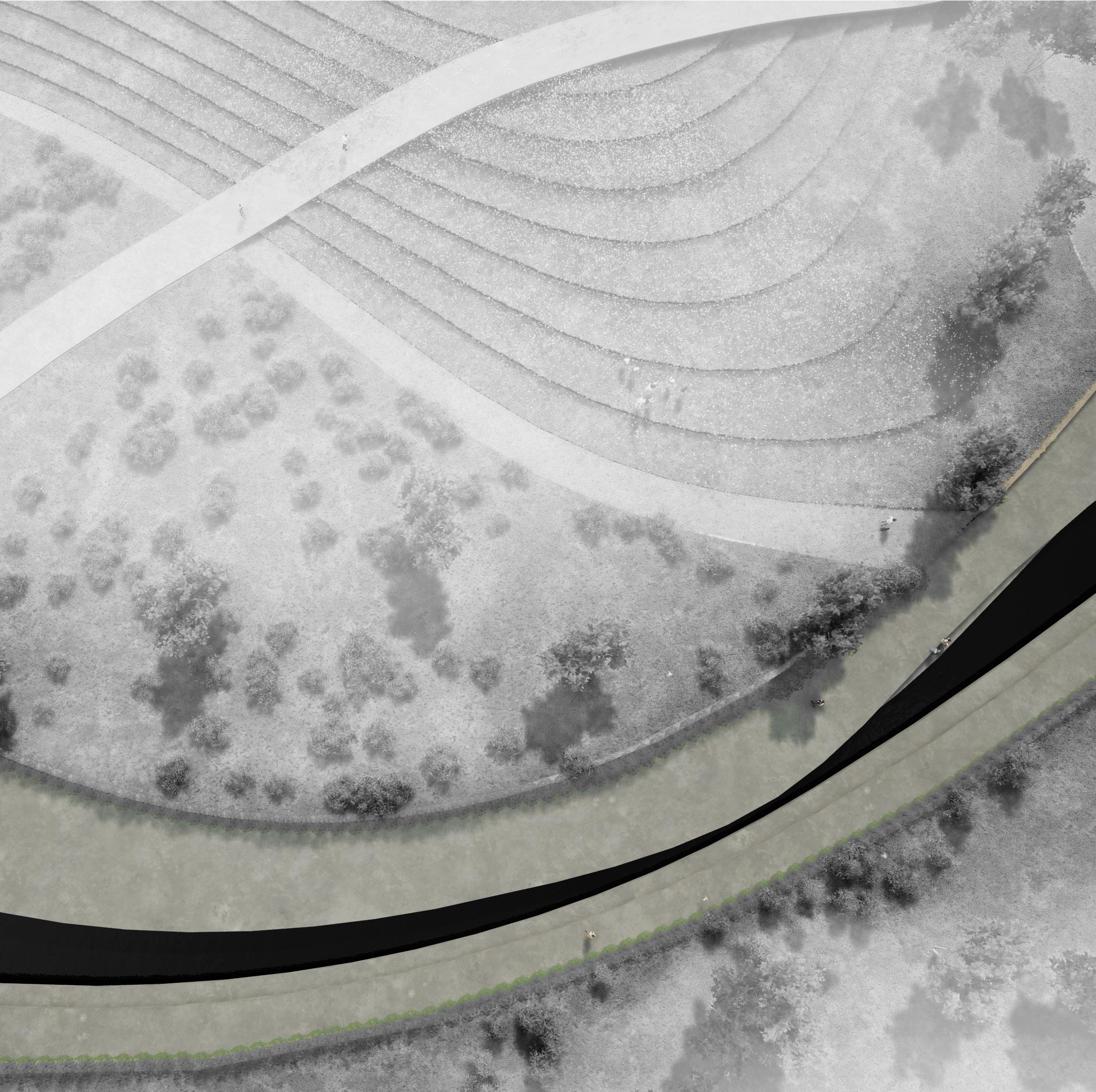 The first intervention addresses ground-level permeability. The existing railway line forms a rigid boundary between the city and the interface, obstructing access and fragmenting spatial continuity. To overcome this, the design introduces underpasses and subways beneath the rail corridor. These connections enhance urban-interface accessibility and activate otherwise residual spaces. The strategy transforms physical divisions into transitional zones, encouraging smoother pedestrian movement and encouraging programmatic use in the captured inbetween areas. By adding socio-ecological functions to these spaces, the edge condition is reimagined as a continuous public realm.