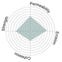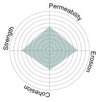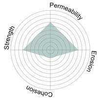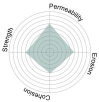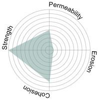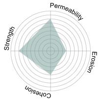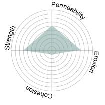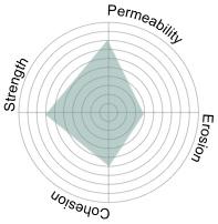 To address erosion and binding, zeolite was introduced in the inner layer. Although zeolite partially blocked biochar pores, it provided secondary ecological benefits by adsorbing ammonium (NH₄+). Its use in small proportions improved cohesion between layers, especially when extended into the outer layer, but higher concentrations compromised permeability. Importantly, zeolite’s adsorption spectrum is limited: it binds ammonium but does not absorb phosphorus or contribute to pH stabilization.9 Thus, its role was carefully restricted to a supportive rather than primary component.