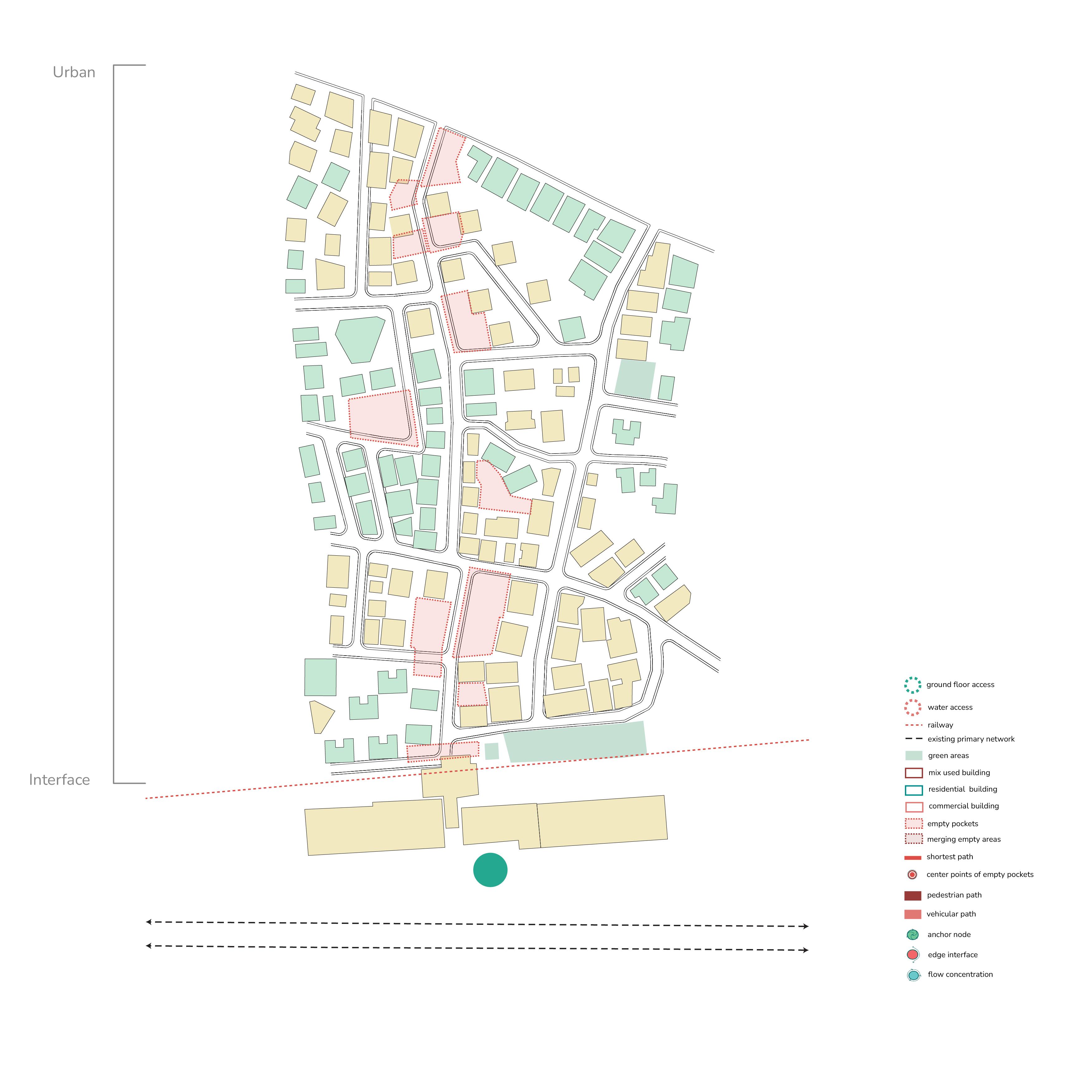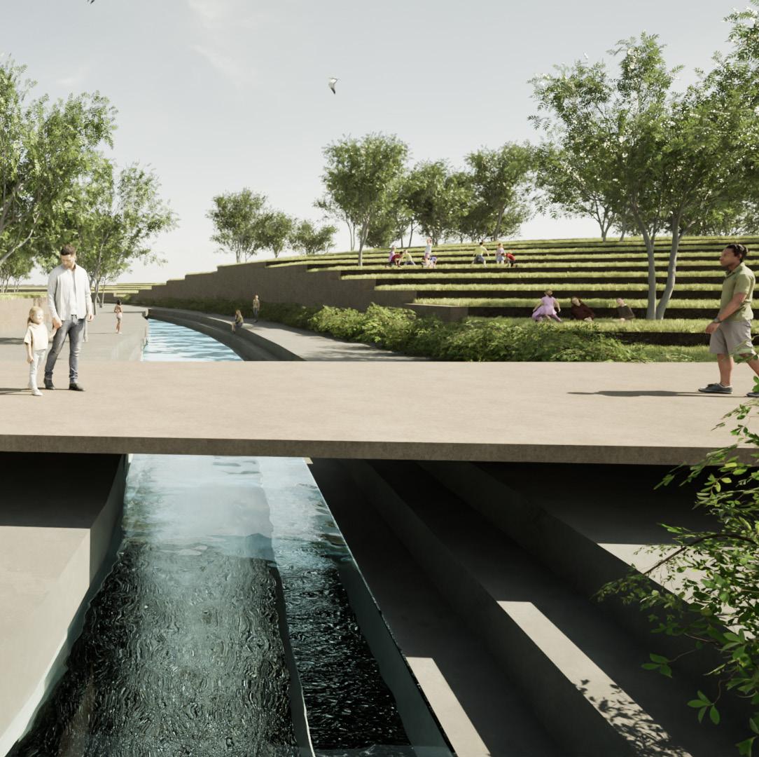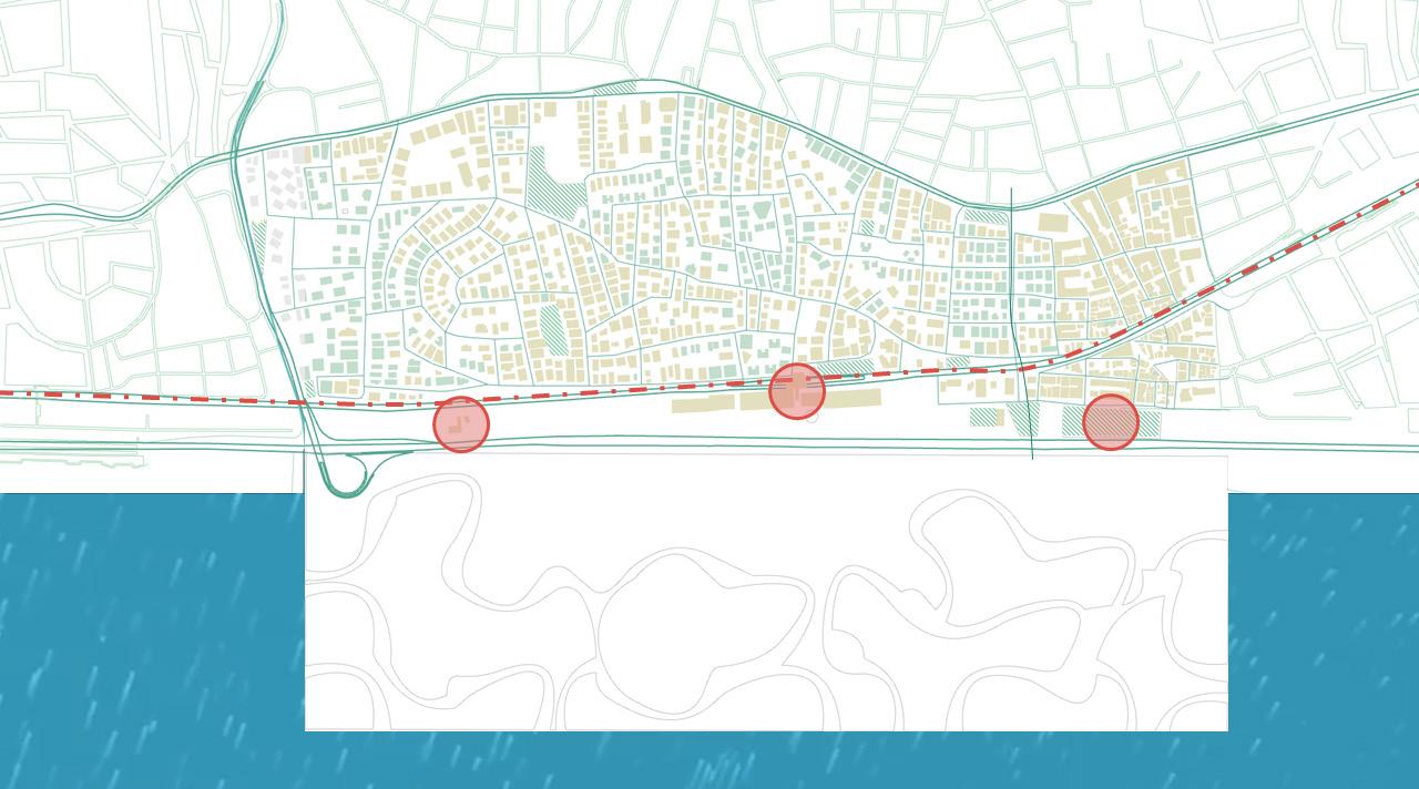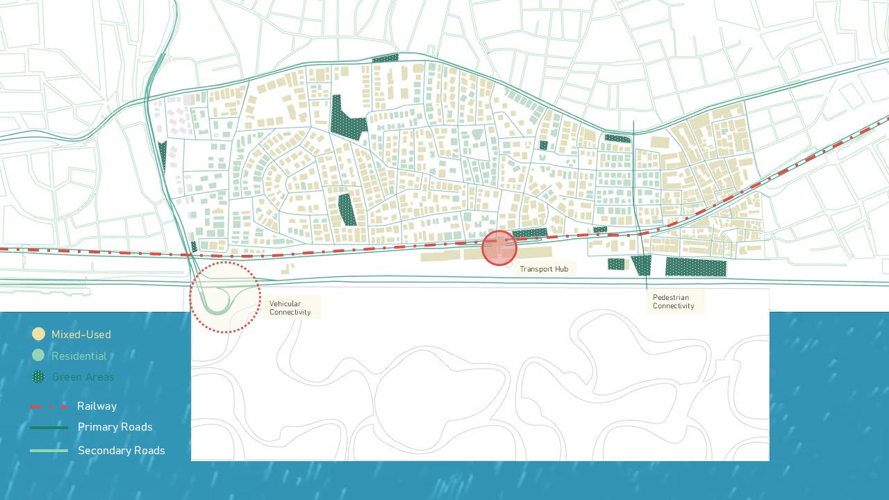 By reactivating underused plots, opening movement corridors beneath existing infrastructure, and embedding water within the urban fabric, the proposal transforms the interface from a hardened boundary into a porous, connected, and socially vibrant zone.