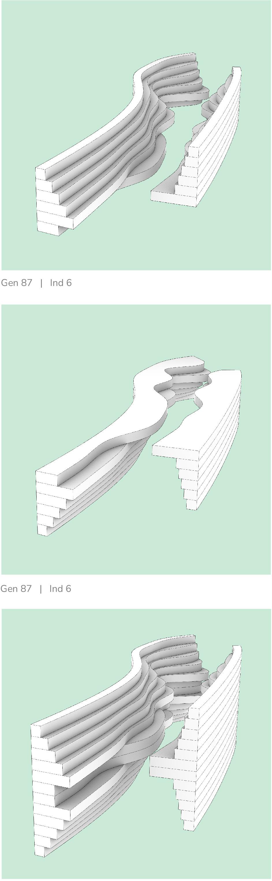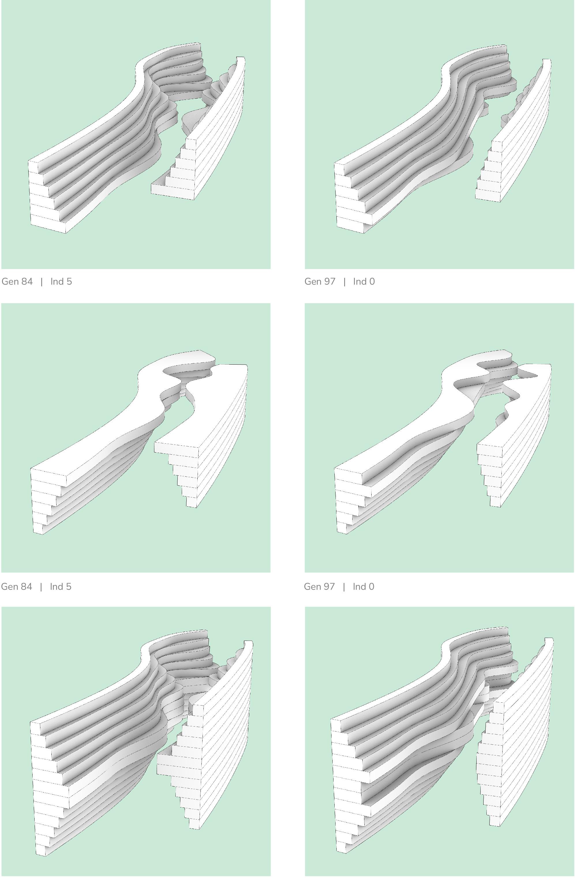 Morphologies are positioned not as isolated objects but as part of an integrated spatial system. Curvature, elevation, and edge conditions are manipulated to guide movement, frame views, and define resting points. Changes in level subtly influence the duration of stay, establishing a behavioural rhythm without requiring formal boundaries.
