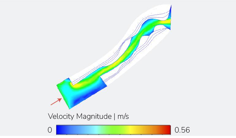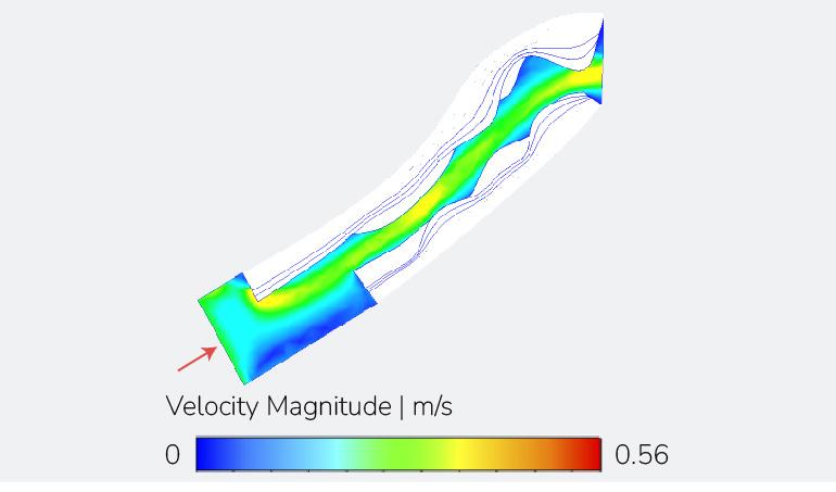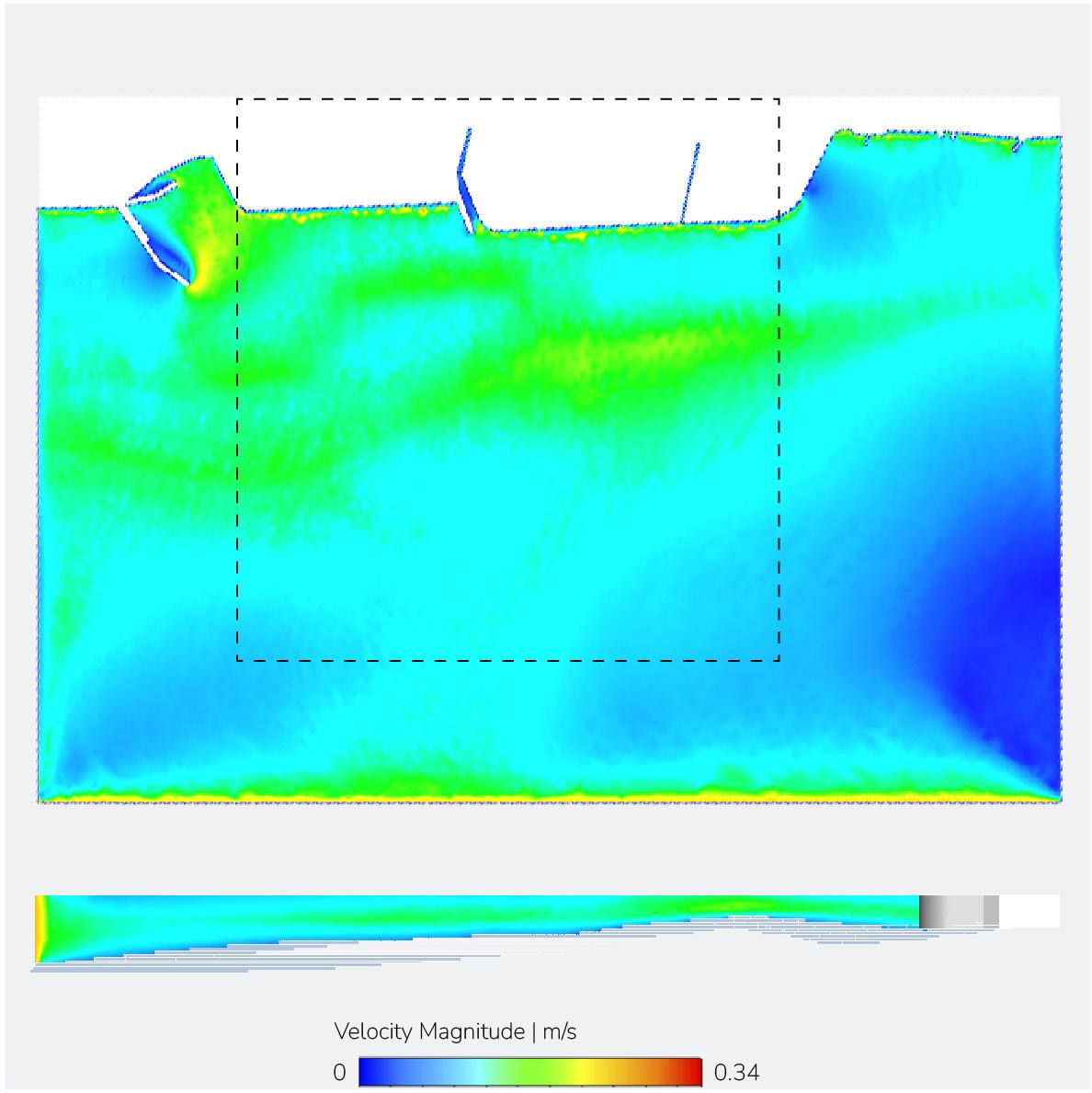 Fig. 5.6. Comparative velocity results of length experiments under a dominant wind direction. Results generated using Autodesk CFD by the author.