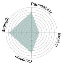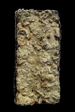 Among these, permeability was considered paramount, not only as a measure of porosity but also as a measure of the functional openness of biochar’s microand mesopores. Research demonstrates that biochar’s negatively charged pore surfaces attract ammonium (NH₄+) ions, while its mineral content enables phosphate (PO₄³-) binding.7 If these pores are blocked during composite formation, the material loses much of its ecological functionality. The design of the composite system therefore, required careful calibration of particle size, binder ratios, and curing methods to maintain open-pore networks, ensuring that biochar could continue to act as a nutrient sink rather than an inert filler.8